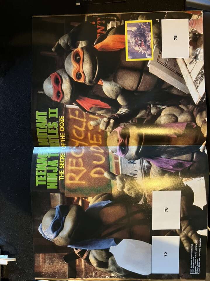TMNT Teenage Mutant Ninja Nurtles 2 SOTO Secret of the Ooze Sticker Album. 1991 rare Diamond official motion picture sticker album Northshore investment New line cinema. Partially completed.