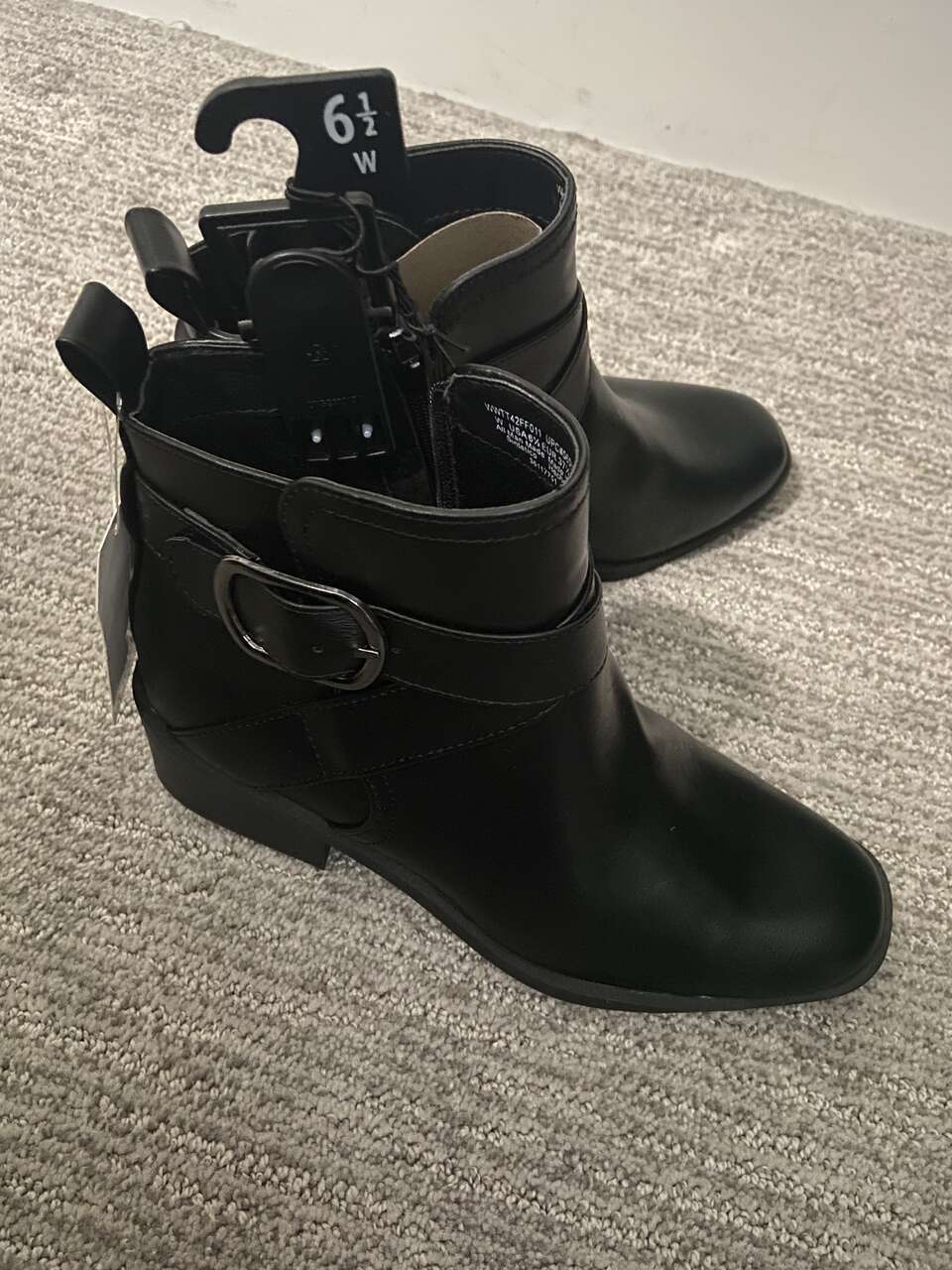 VenmoBrand new woman buckle boots. They are 6 1/2 wide. They are brand new, still have the tags, never been worn. They have memory foam so it is very comfortable to wear throughout the day. Original price is $24.97 selling for $20.
