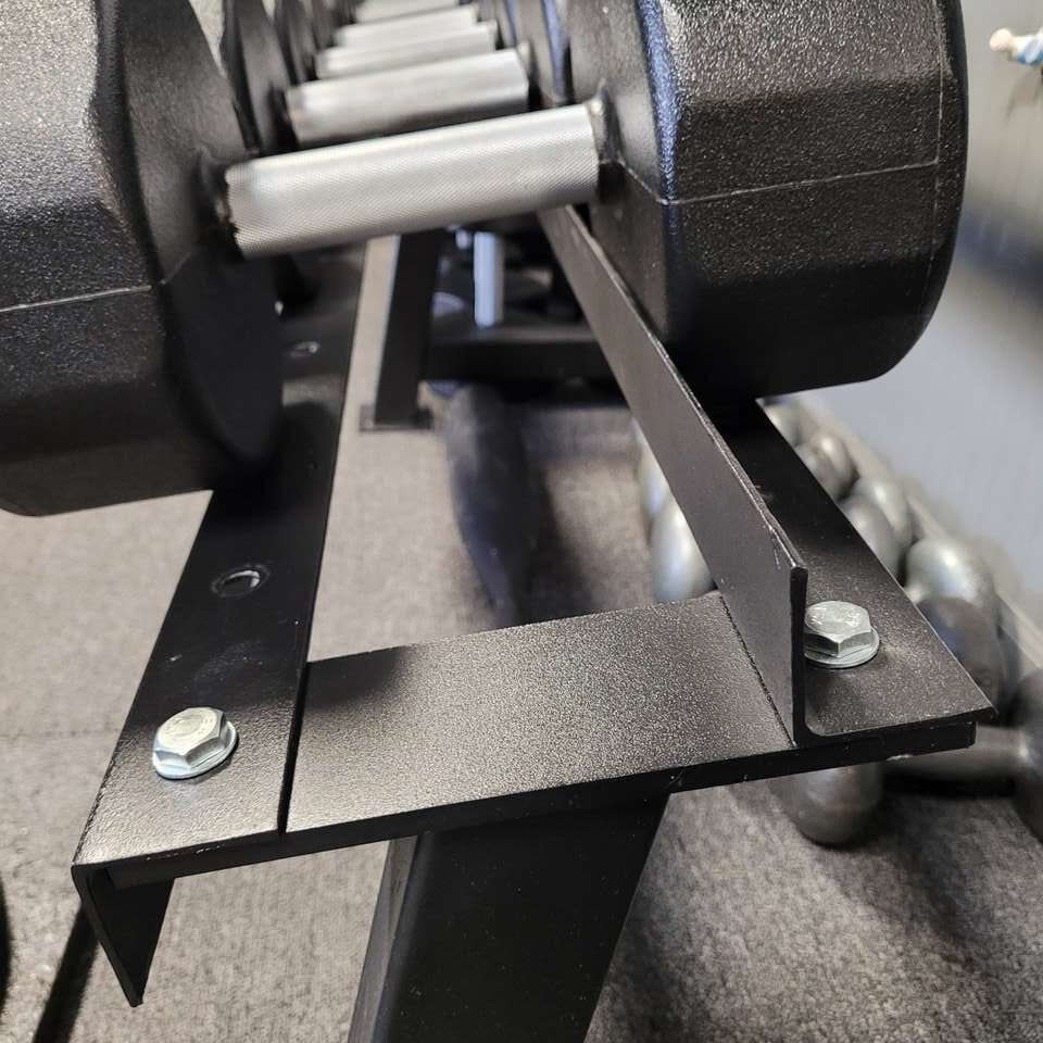 Heavy Duty 2-Tier Rack. With our unique modular design, these racks can hold pretty much anything, whether it be classic Rubber Hex, Round Pro Style, or multi-sided Urethane. You can store virtually any dumbbell style you like. Great for heavy dumbbells too.