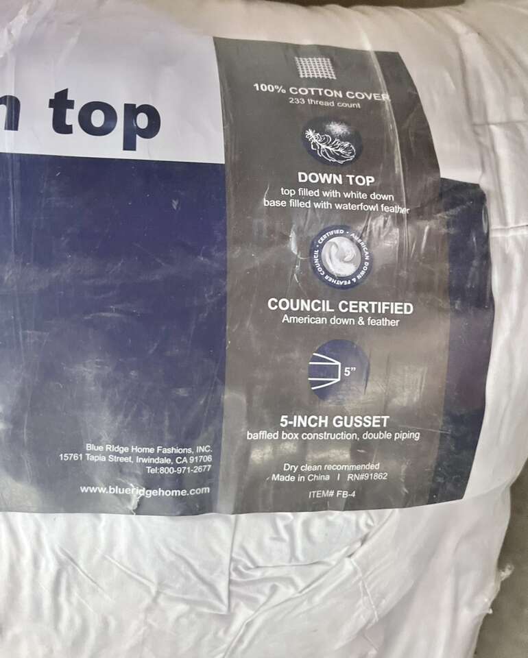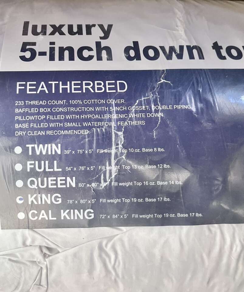 Blue Ridge Home Fashion 5'' Down PillowTop Feather Bed King 78 in x 80 in x 5 in New Please Text