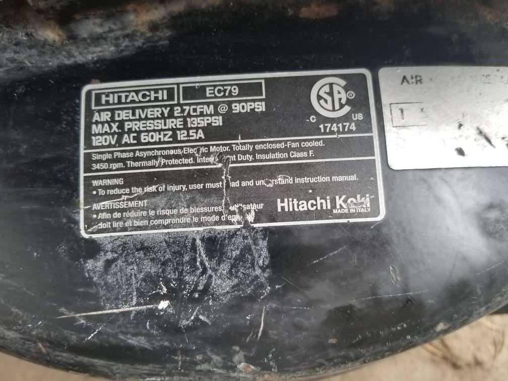 #2 Hitachi EC79, 135PSI. 2.7 CFM@90 PSI.