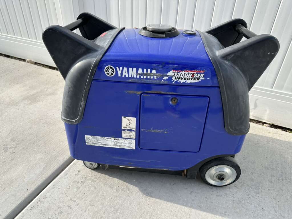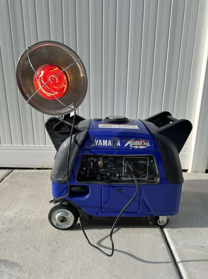 Yamaha EF3000iSEB inverter generator. This generator runs great and is super quiet. Electric start or pull cord. Great for camping or backup power. Has easy to roll caster wheels for easy transport and large grab handles for loading. 3000 watt rating. It weighs about 160 lbs. this model has boosted technology to provide more power for initial power demand of appliances being powered on. It is super quiet. Around 65 decibels. Heat lamp not included. Thanks