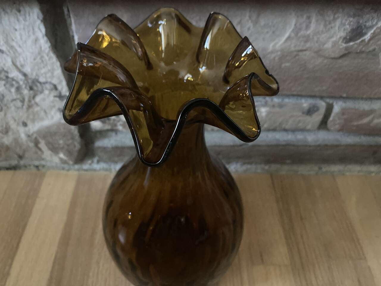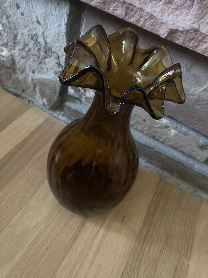 VenmoVintage amber color vase with ruffled top. Measures approx. 9" tall, no chips or cracks. Please see more by seller for many vintage and collectibles items from family home and our own.