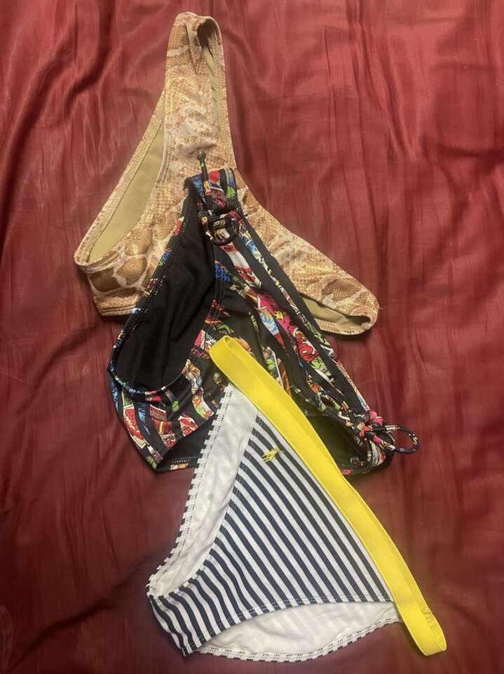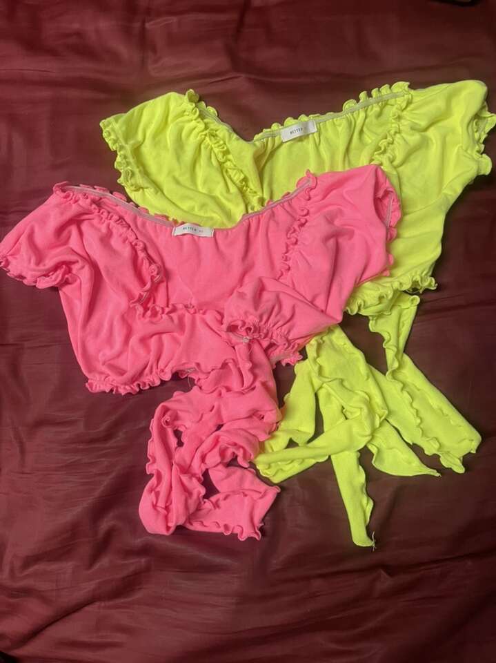 $8 each - one piece swimsuits (size S, M, LG) $5 each - tops (size LG) & bottoms (size S) $8 each - combo/set one top + bottom $8 each - neon pink & yellow wrap tops $8 - white swim coverup $5 - H&M white halter top $6 - sports bras bundle (size S) - $2 each $10 - bodysuit/ leotard