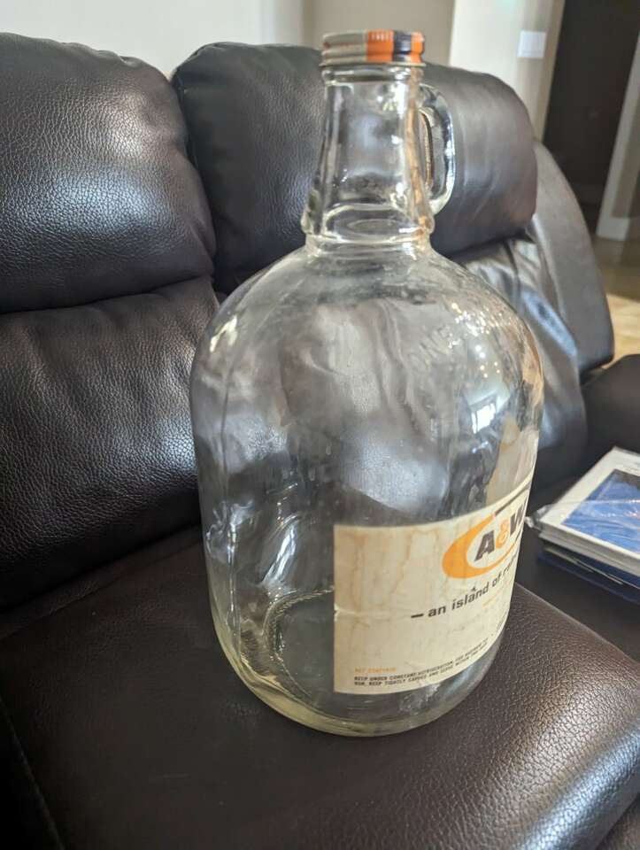 Vintage 1Gallon A & W Robert Bottle. Probably from the 1970's. Good condition. The label is a bit faded.