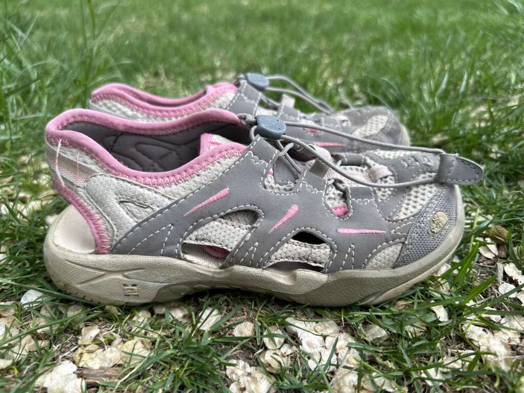 The Northface youth size 3, gray/beige with pink trim, hiking sandals. These are in excellent condition. See photos for details. I take cash or Venmo. Text is best. 801-201-4446.