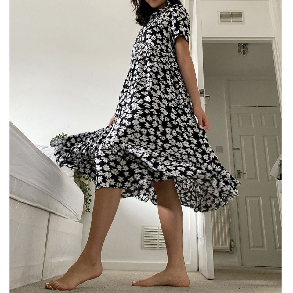 Classic button-down shirt dress in a breezy midi silhouette, from UO. Short sleeve silhouette features an allover print, pointed collar and tiered ruffle skirt. 100% Viscose. Cash only, I do not have payment apps.