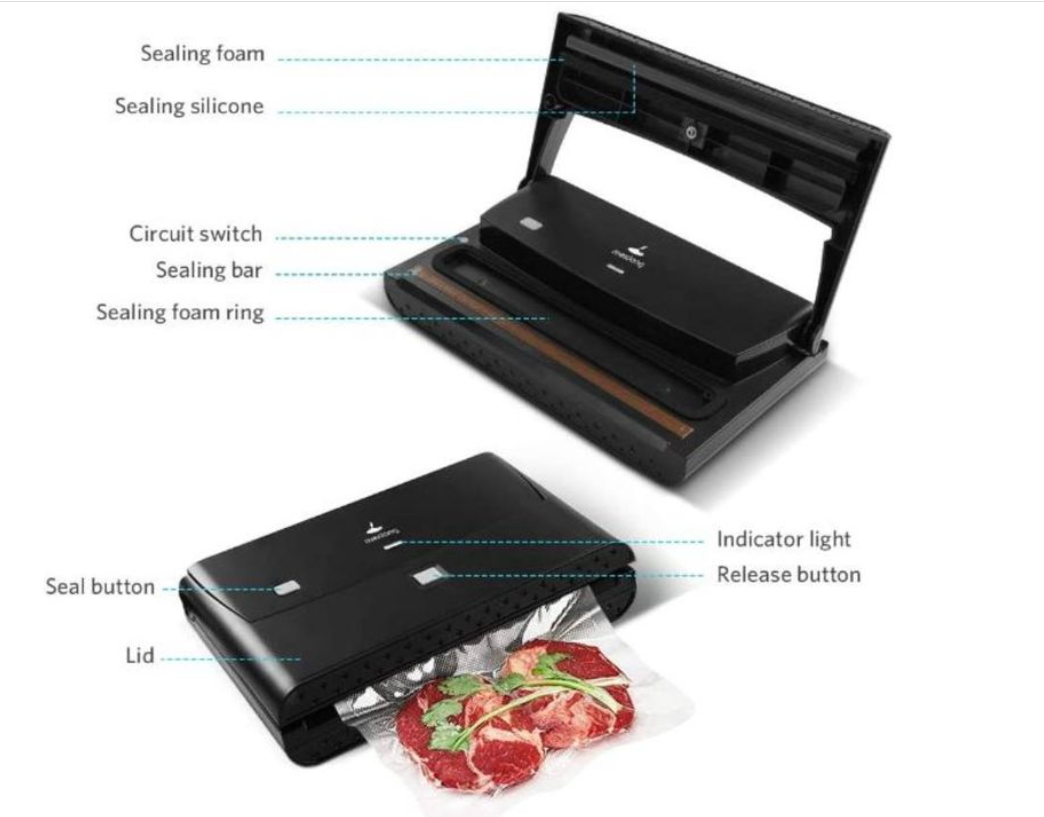 Easy to Operate Designed with semi-automatic vacuum sealing operation, the vacuum sealer machine with press-type lid features 2 buttons for sealing and releasing. Quick start by pressing the lid of the food vacuum sealer machine without waiting.
