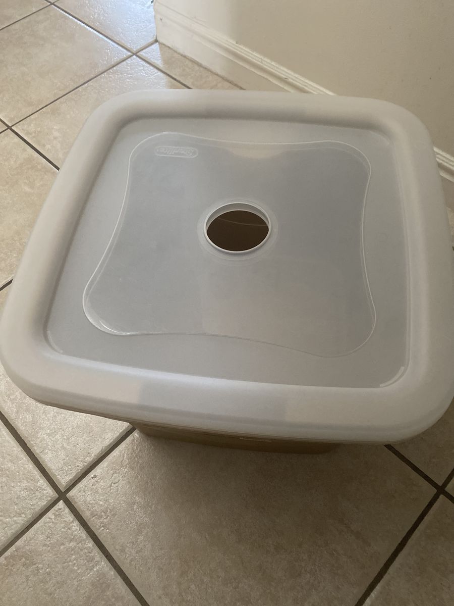 Brand new. Gold color. 16”x16”x10”. Two available. Lid has hole in the middle. $5 each.