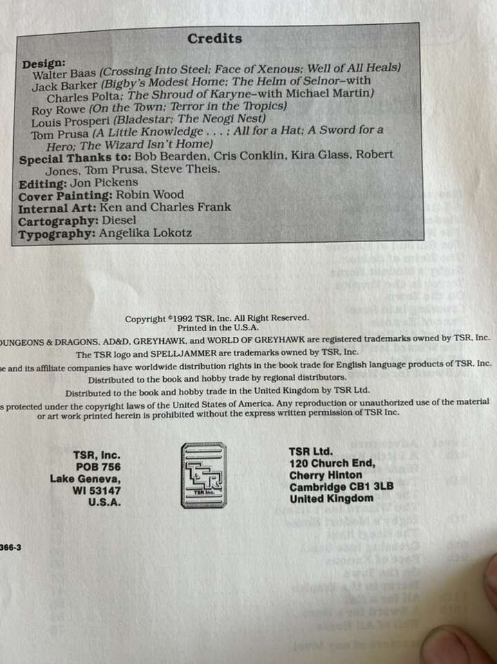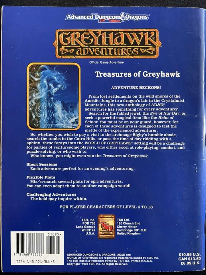 Treasures of Greyhawk Adventures Dungeons and Dragons TSR 1992. Module is complete and in good shape. There is some various highlighting.