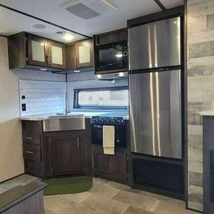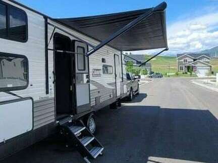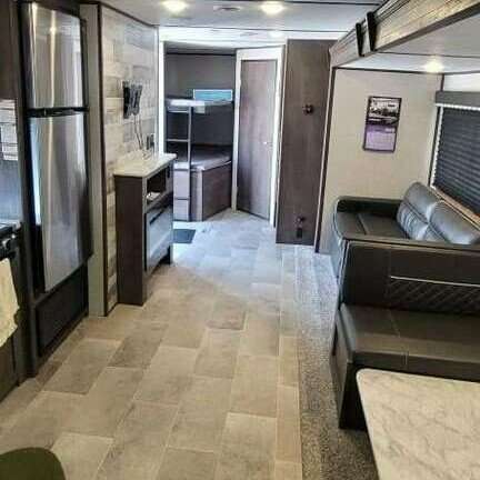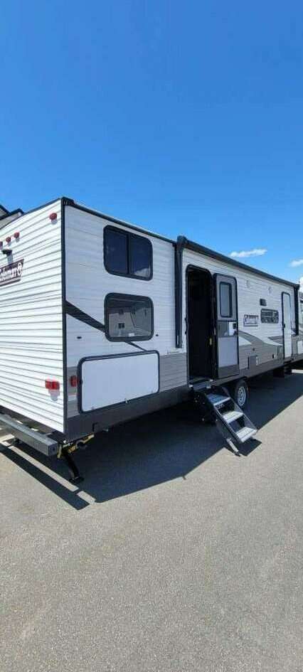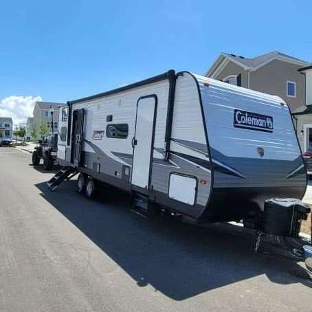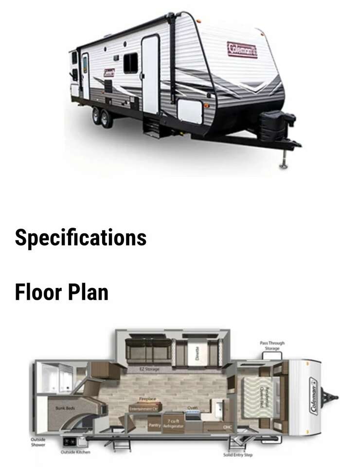 I am selling my 2021 Coleman Lantern 285BH. Approx. 32 feet in length. Exterior: One side out, retractable awning, front and rear retractable stabilizer jacks, lights, outside speakers, two storage compartments, two propane tanks, outside kitchenette with fridge, and two entry doors. One entry goes to the main bedroom and the other entry to the main living area. Interior: sleeps approximately 8-10. Has a bunk area with storage underneath, Leather couch, dining area with storage underneath, bathroom w/shower, toilet, sink, and medicine cabinet, has walk-in pantry, electric fireplace, heating and A/C, gas stove and oven, electric full size fridge, sink and cabinets. The bedroom has one standard size queen bed, overhead shelving, two vanities, and storage under the end of bed. Sliding door closes entry from bedroom to main living area. Asking $32,900. Will throw in trailer hitch, hoses, and surge protector. Please see additional specifications for further details.