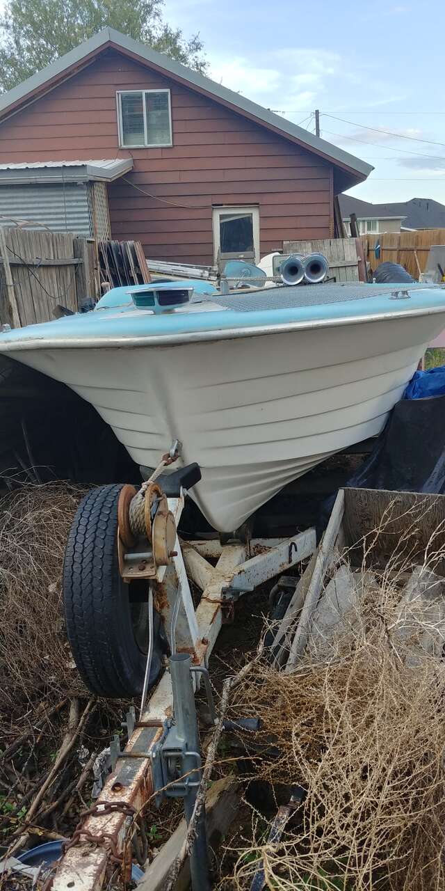 VenmoREAD ADD. 1970 19ft Fiberform with EZ load trailer w/ rollers. 6cyl inline Chevy motor. Outboard foot is a part. 2nd boat is a 1964 Fiberform 16ft with a 75HP Johnson outboard. ( ran well when tested years ago) And trailer. Value is the Motors and trailers. But both boat's in solid condition. The 1964 would make a cool patio table set up, like up in Bear Lake at that restaurant. 75HP Johnson moter $200. 6cyl inline $200. EZ load 19ft trailer $400. Smaller 16ft trailer $300. Parts or Make offer on whole thing. TRAILERS CAN NOT BE TAKEN UNTIL BOATS ARE SOLD. Call or text if interested in all or part. I just don't have time to work on them.