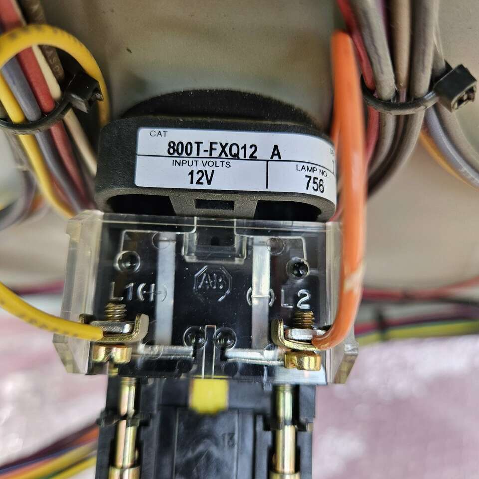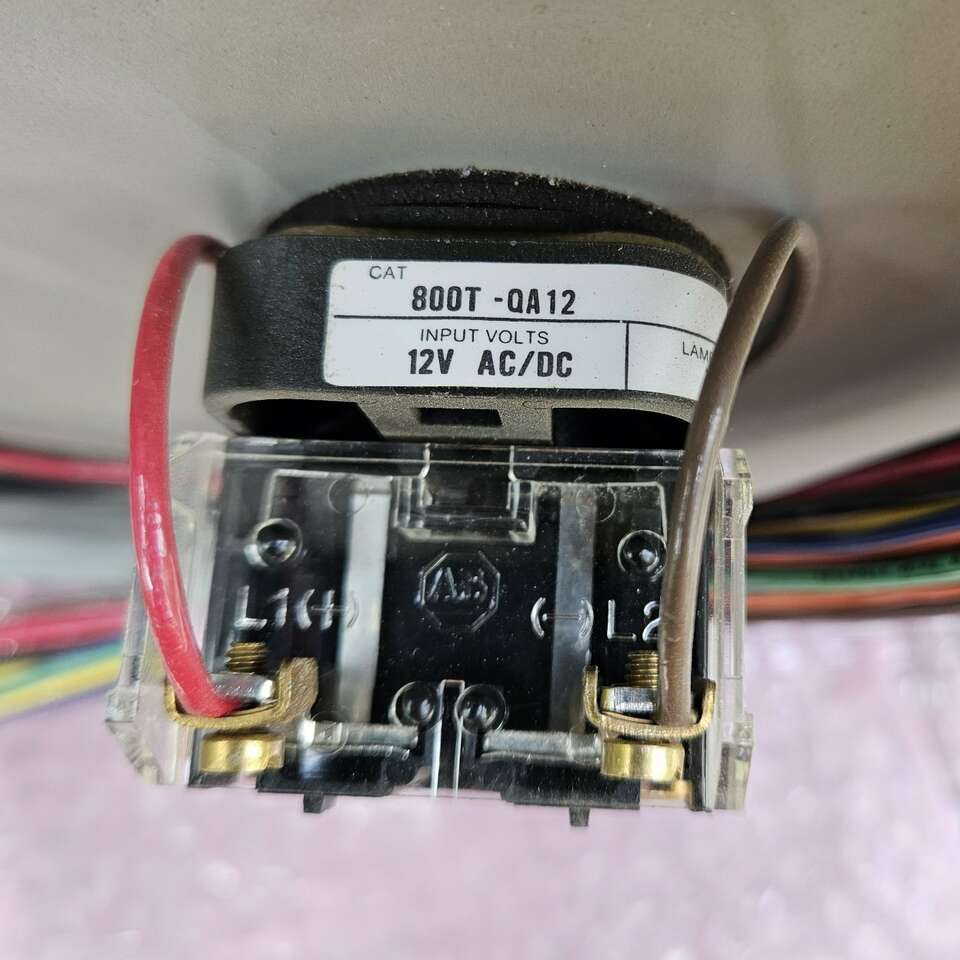 4, 800T-QA12 illuminated push buttons and 1, 800T-FXQ12A push-pull switch pre-wired and mounted to a 19 7/8" x 19 7/8" door. Assembled but new and unused switches. More than 1 available.