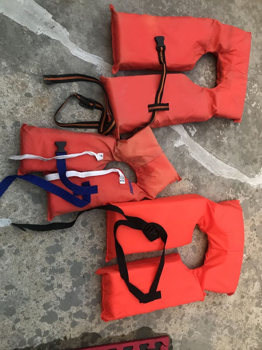 kids SMALL 30 to 50 pound life vests 10.00 for the red one 20.00 for the blue and green neoprene vest with zip up closure
