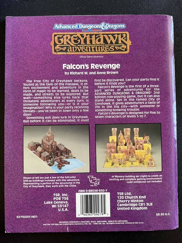 Greyhawk Adventures 9279 Falcon's Revenge WGA1 AD&D (missing map and cutouts) Some pages have highlights.