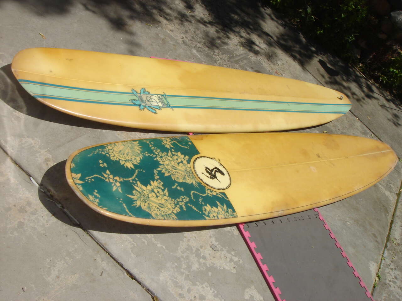 SEE THE PHOTOS THEY WILL RUN BETWEEN 200 FOR DAMAGED OR SEVERE SUN FADE AND 1800.00 FOR SIGNED LONGBOARDS FROM THE 60'S.