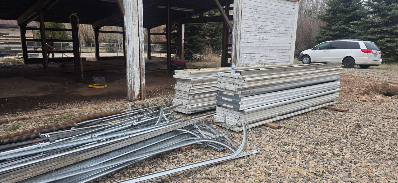 CALL FOR SMALLER QUANTITY BUNDLES. REDUCED PACKAGE PRICE 50% OFF PRICED AT $100,000. NEED TO MOVE PACKAGE. WILL BREAK UP SMALER PACKAGES, CALL ME. LETS TALK PRICE?. P0LE BARD REDUCED PACKAGE PRICE. ENGINEER AND ARCIHITECTURAL PLANS INCLUDED FOR NEW INSTALL OF BARN OR STORAGE PACKAGE PURCHASE FULL BARN APPROX. 14000 SQ FT STRUCTURE, WILL SELL APPROX 5000 SQ. FT. PACKAGES. VERY NICE WOOD, DOUGLAS FUR HARD WOOD THROUGHOUT PACKAGE. ALL IN GREAT SHAPE. OPEN ARENA PLUS 24 STOOLS. BARN DOORS/ROLL UP STEEL GARAGE DOORS, VIEW PICTURES, EXISTING STANDING BARN SHOWING METAL SIDING, ROOFING, WOOD STRUCTURE FRAMING, READY FOR PICK UP OR DELIVERY. ( CALL FOR PRICING ON PACKAGE ). CUSTOM COPPER CHIMNEY SIDING/WRAPS ALL CUSTOM, SPECIAL PRICING. BY KIMBALL ROOFING AND SIDING, NEW AND USED METAL LIFE TIME SHINGLES, MANY STYLES, ALSO PURE COPPER ROOFING PANELS FOR MANY REMODELING USES, CALL FOR INVENTORY, COLOR AND PRICING. USED 3FT WIDE METAL PANELS AT $75.00 PER 100 SQ FT. ON THE METAL PANELS. ASK ABOUT ALL PRODUCT PRICING, NEW METAL STANDING SEAM PANELS AND SHINGLES, CALL KIMBALL ROOFING AND SIDING, KIMBALL 801-910-9560