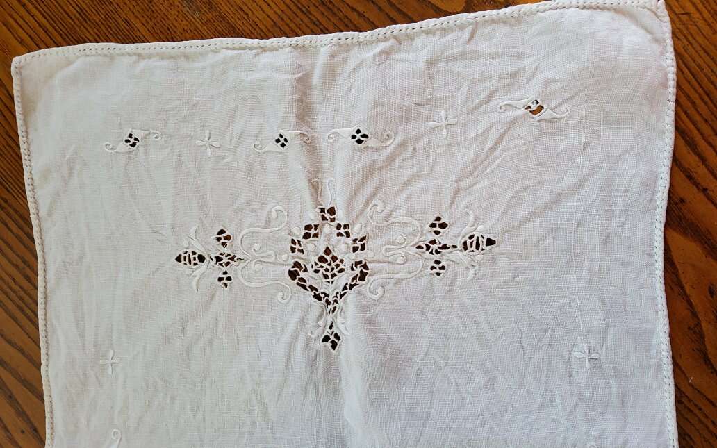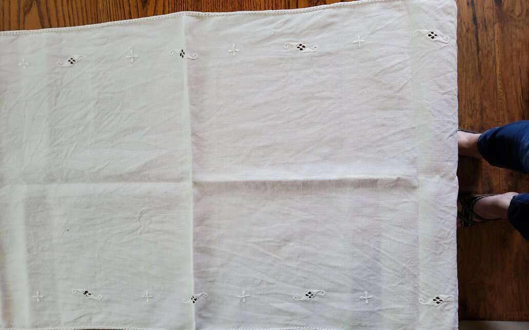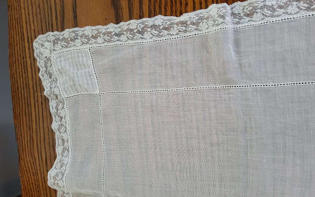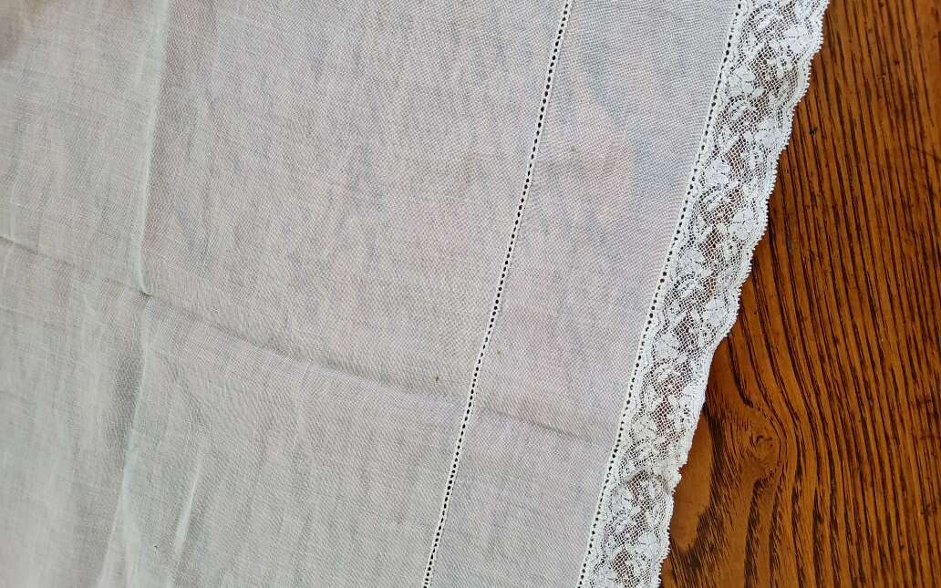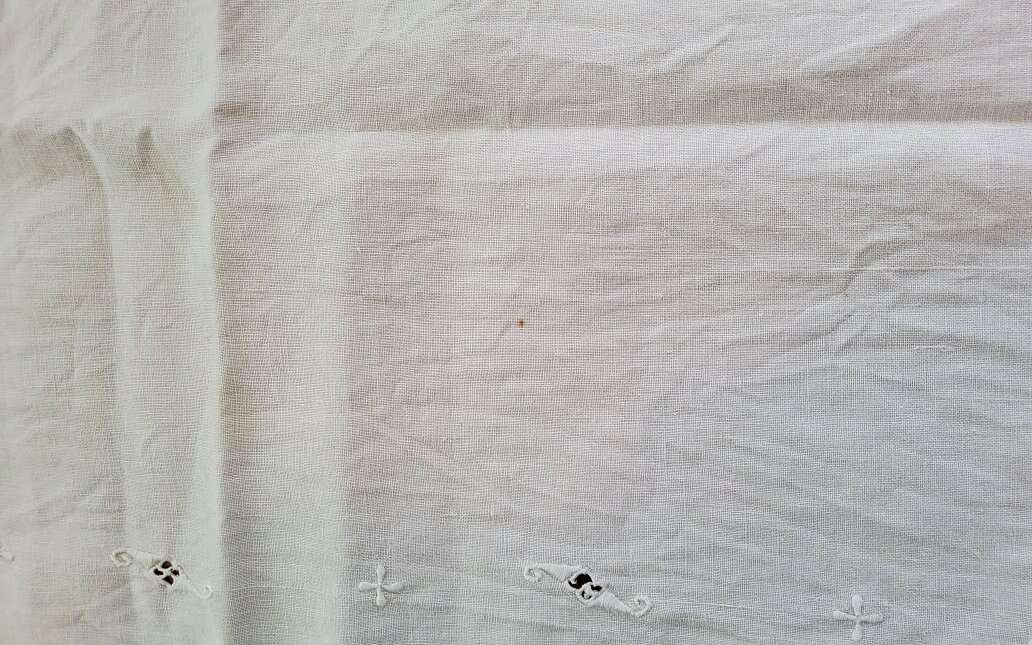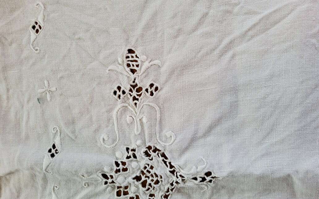 2 Vintage Table Runners. Embroidered, Cut Work. Nice!. Heavy Linen runner is 48 x 17". Nice Art Nouveau Embroideries and Cut Work. One small stain. Sheer cotton runner is 34 x 14.5". Embroidered Daisies and French knots. Some thread pulls. Machine made lace edging. See pictures as part of description CASH OR VENMO ONLY