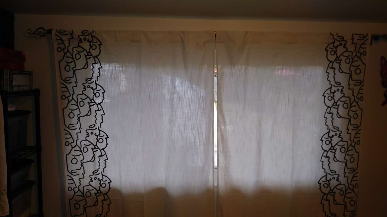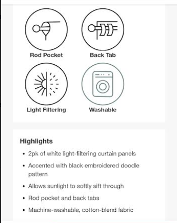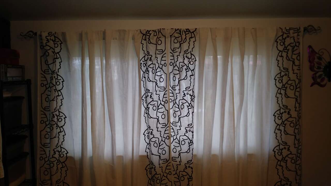 Venmo2 pack Light filtering, embroidered, window curtain panels - Opalhouse™ designed with Jungalow™ sold at Target (online only) for 45 dollars a set. 2 pack of white curtain panels Size of each panel is 84"L x 40"W (84”L x 80”W for two) Accented with black embroidered doodle pattern Allows sunlight to softly sift through Rod pocket AND back tabs Machine-washable, cotton-blend fabric The pair of light-filtering curtain panels allows sunlight to softly sift through while offering you privacy. Made of a cotton-blend fabric and accented with a black embroidered doodle pattern. To fit the curtain rod of your choice, each curtain panel also has back tabs AND a rod pocket. Machine wash & tumble dry. Iron as needed. NOTE: I have an open pair that you can look at before you buy; yours will be new in an unopened package. Personal note: I tried one package (2 panels) on my window (71 inches wide) and found two packages worked better for full coverage (See pics). I also tried both the tabs and pocket on the rod; the pocket works better with a skinny curtain rod (See pics). Thinking these could easily be dyed to match a color scheme in a room. $10 each package of 2 panels. Multiple packs available. Discount if you buy 3 or more. To see all our ads on ksl.com, click on classifieds, then in the search bar, type my KSL number: 1559101 and then push enter or click go. Or click on: (More from this seller) to see our other items. Different items are added often. Thank you for looking.