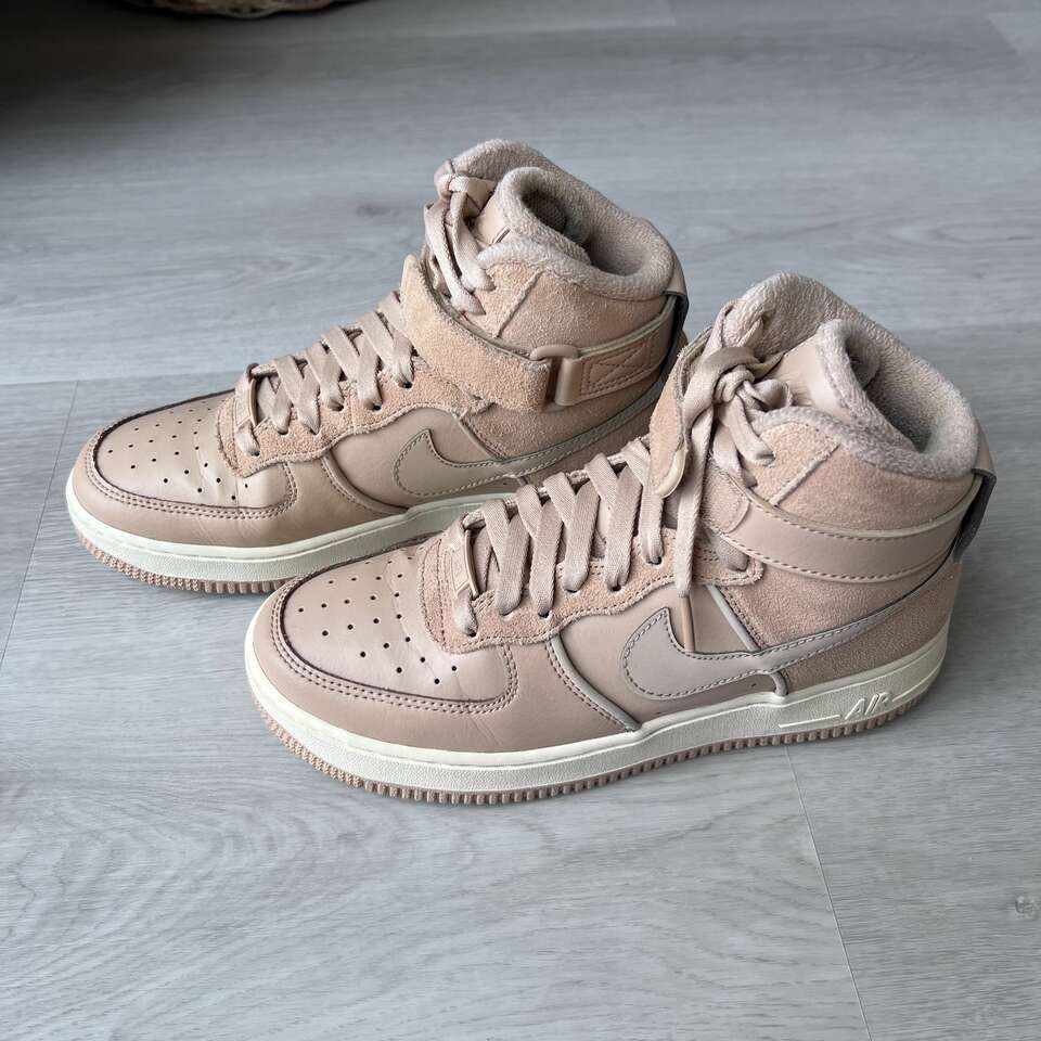 Venmo$120 FIRM. RARE Nike Air Force 1 High in Bio Beige. They were released in 2018. They have been long sold out and are selling for $300+ on Kicks Crew and GOAT. I'm not able to find them on any other online retail sites. These are in great preowned condition with a few minor flaws that aren't really noticeable unless you are looking for them. They look like new when being worn. I've zoomed in on the slight flaws, otherwise they are in amazing condition! Very hard to find these slightly used. They don't come with the original box.
