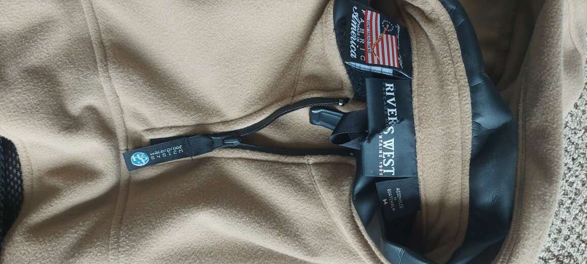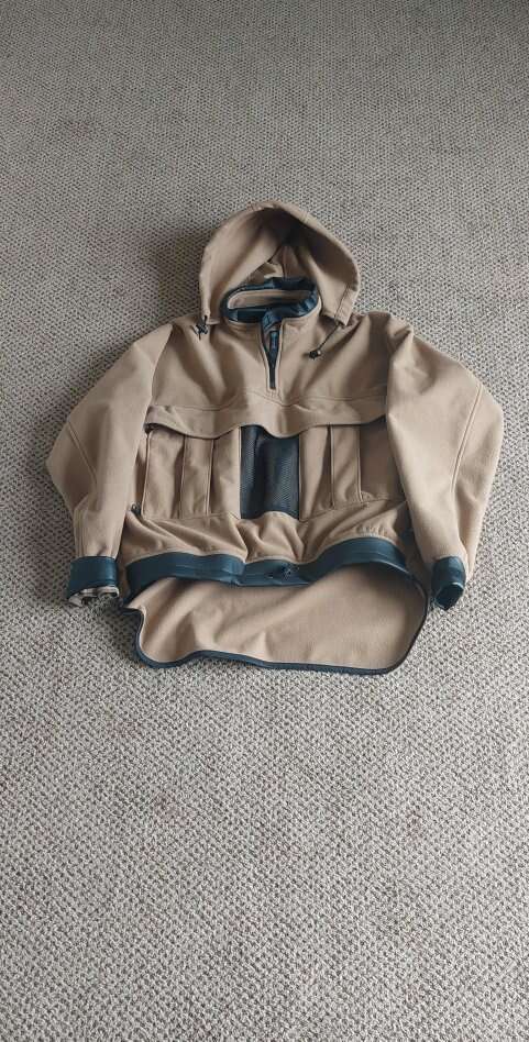 This is a Rivers West cold temp flyfishing fleece Jacket. Great for cold days on the water. Has detachable hood. Has a detachable net for holding extra gear/ Line that has been stripped in.