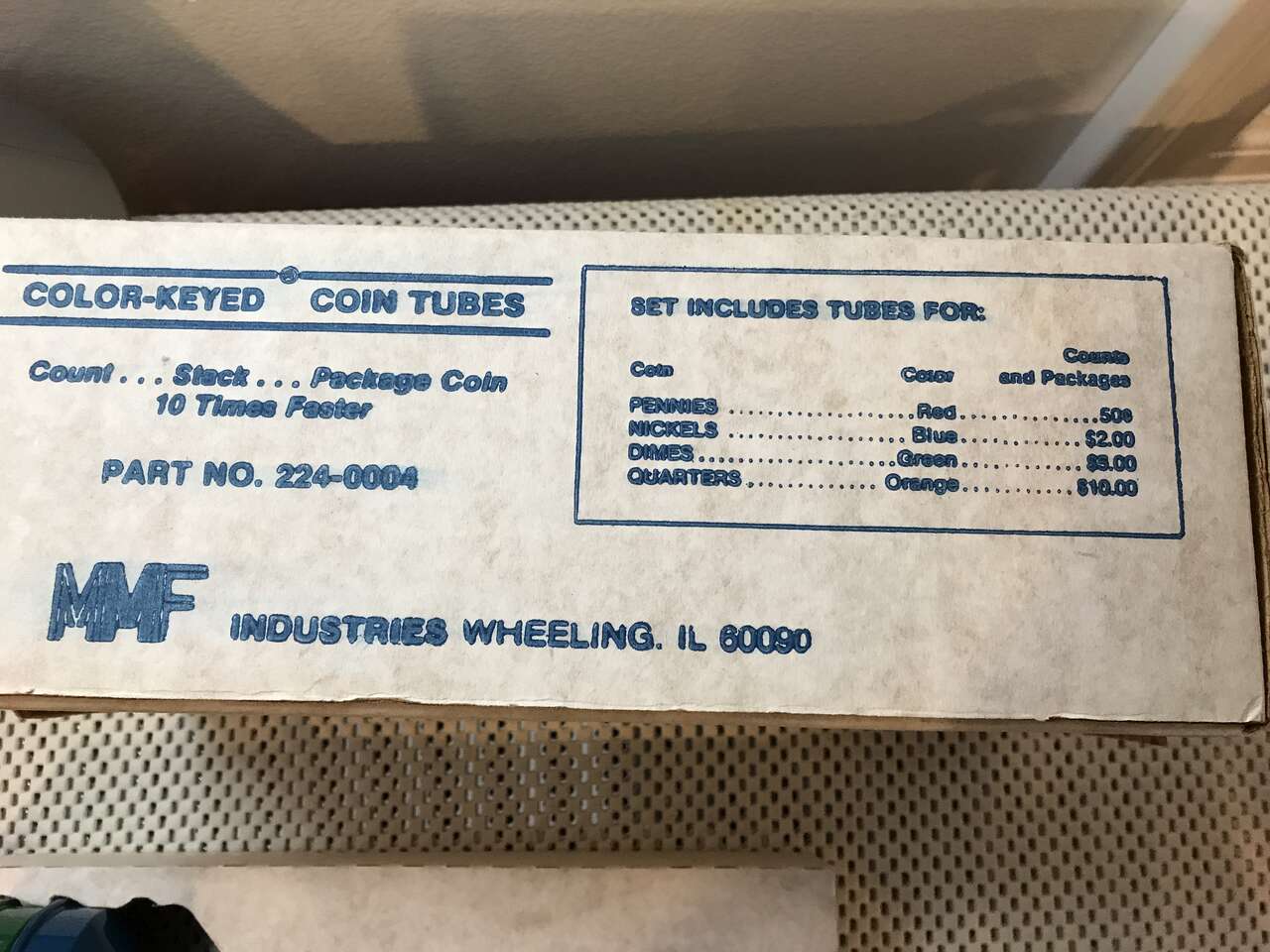 Coin Tubes - Color Coded MMF Industries, Vintage, Excellent condition.