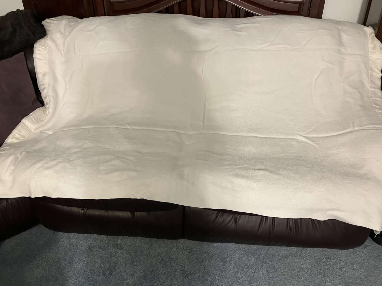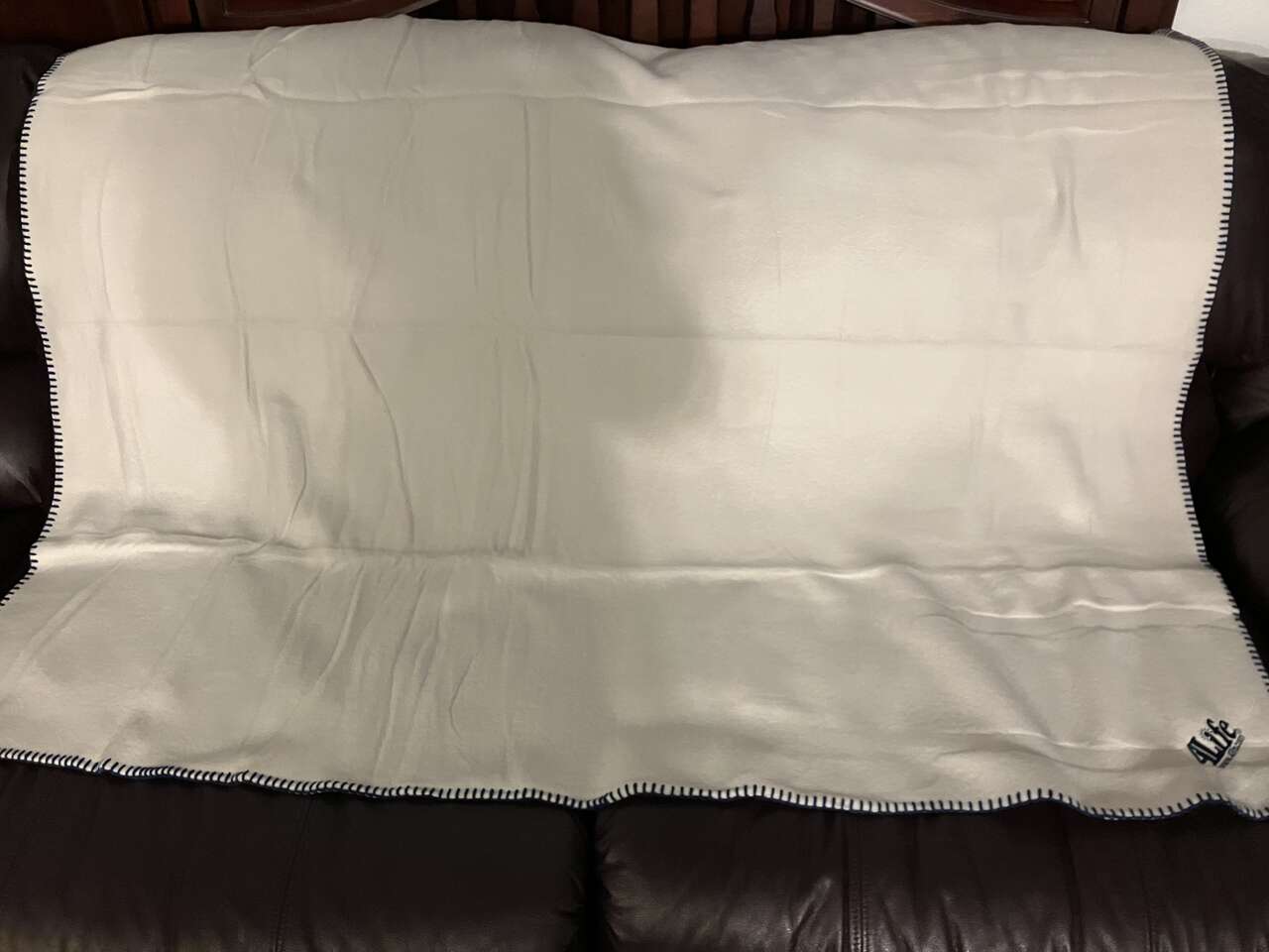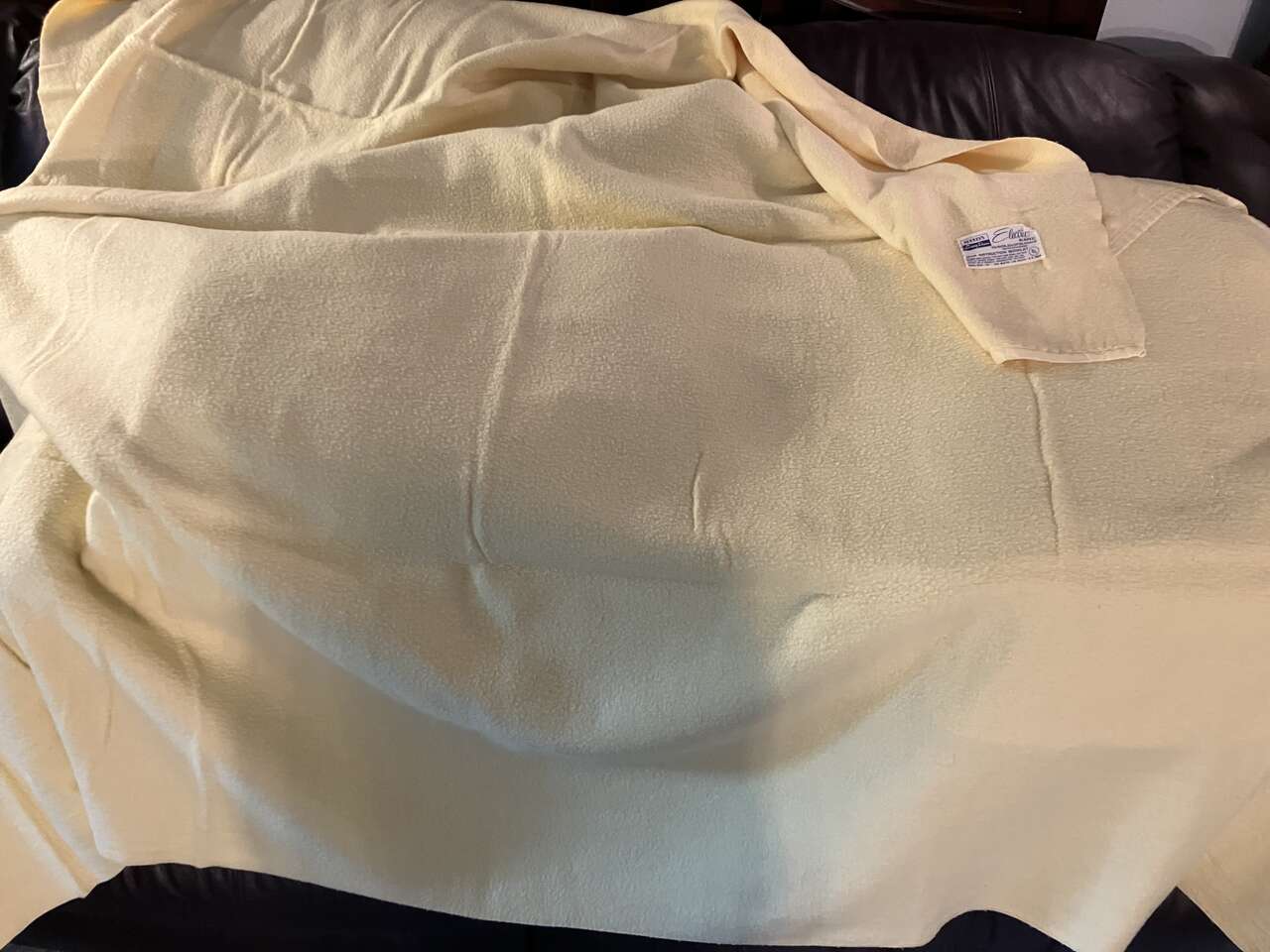 Venmo6 BLANKETS, THROWS and WRAPS. Photo #2 is Olive Green Microfiber blanket 94" wide x 80" long. $5. Photo #3 is Woven 100% Cotton Sheet Blanket 96" Wide x 204" Long. (few minor snags) $4. Photo #4 is Flower Pattern Microfiber Throw 54" x 62", $5. Photo #5 is Red ARUP company logo blanket 5 ft x 4 ft. 100% Polyester, $2. Photo #6 is White 100% Acrylic Twin Bed Blanket with Satin Top and Bottom Edges, $4. SNAP-UP Plaid Wrap $5 (SOLD). Photo #7 is a New Off-White Throw with Navy Trim Stitch. (with velcro carry strap as shown in Photo #1). 4-Life company logo in one corner $3. Plaid "DAD" Throw (SOLD). In Photo #1 along the far right side are 2 Twin Bed Blankets: Light Green (SOLD). One in Yellow(SOLD). Light Blue Blanket (SOLD). Photo #8 Yellow Penny's Electric Twin Bed Blanket (with wires removed). $2. Cash/Venmo. In Sandy. 801-201-5350. All items have been washed for your safety.