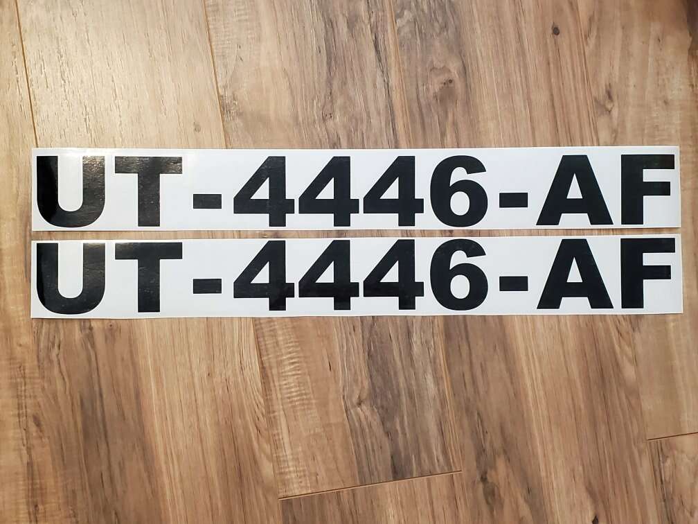 Custom boat registration license numbers. Lots of colors to choose from. Text 801-631-9055 for pricing and color selection. Check out my instagram @customstickerlady