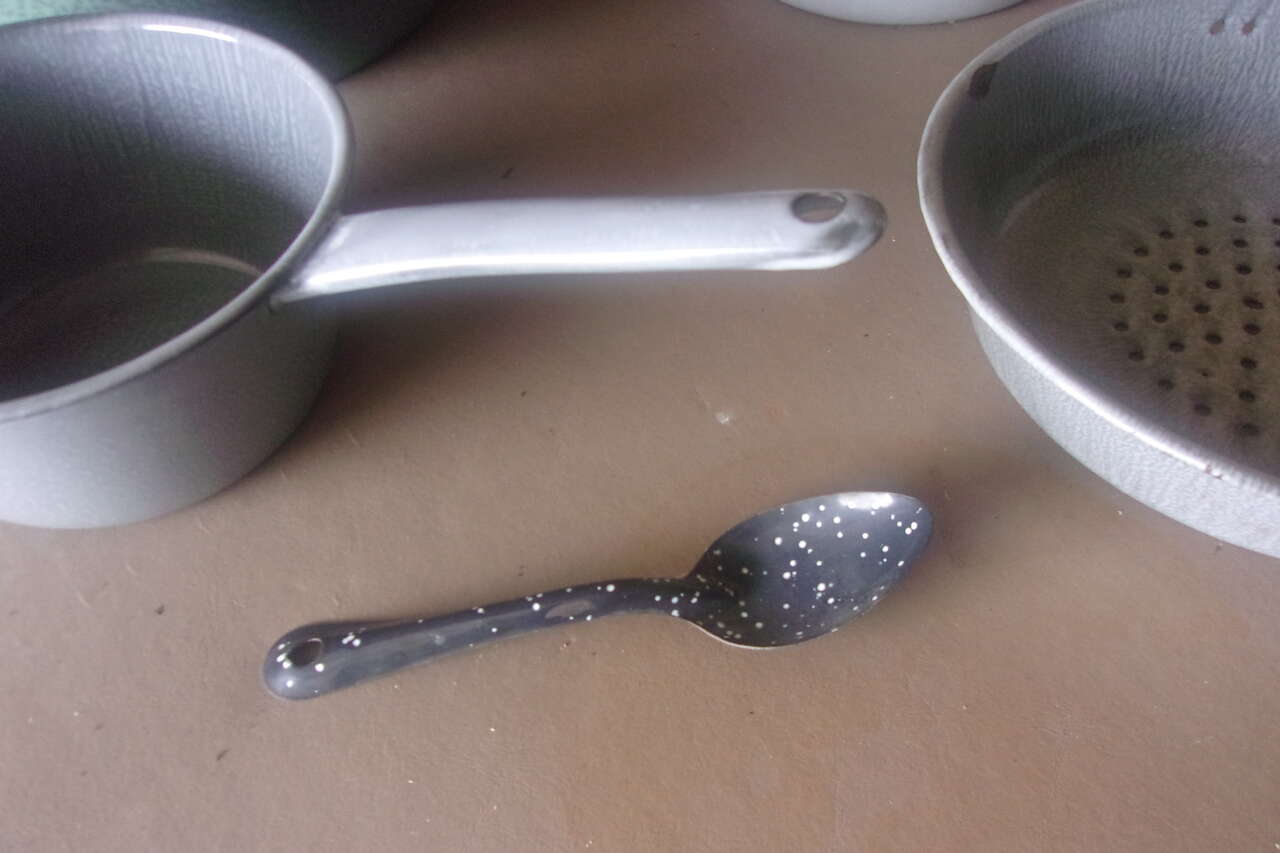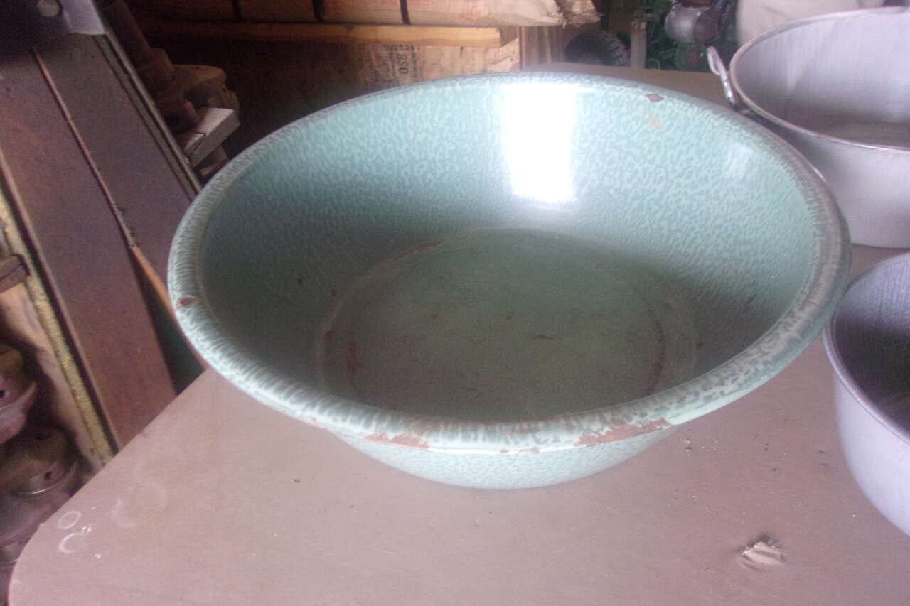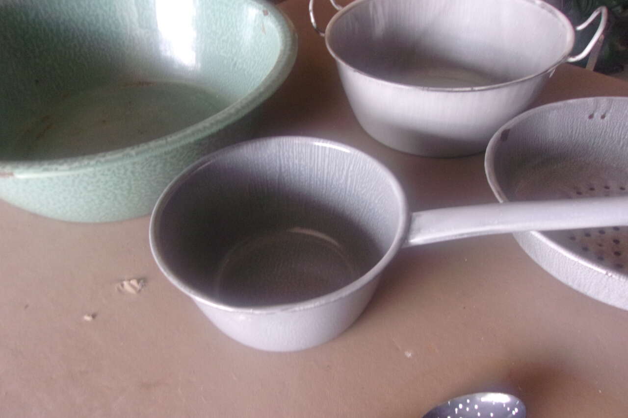 Vintage 5 piece Enamelware set all in very good condition Great for cooking camping or collection, Vintage show very minimal use, $20. call or text Karen 435-512-1799 in Logan