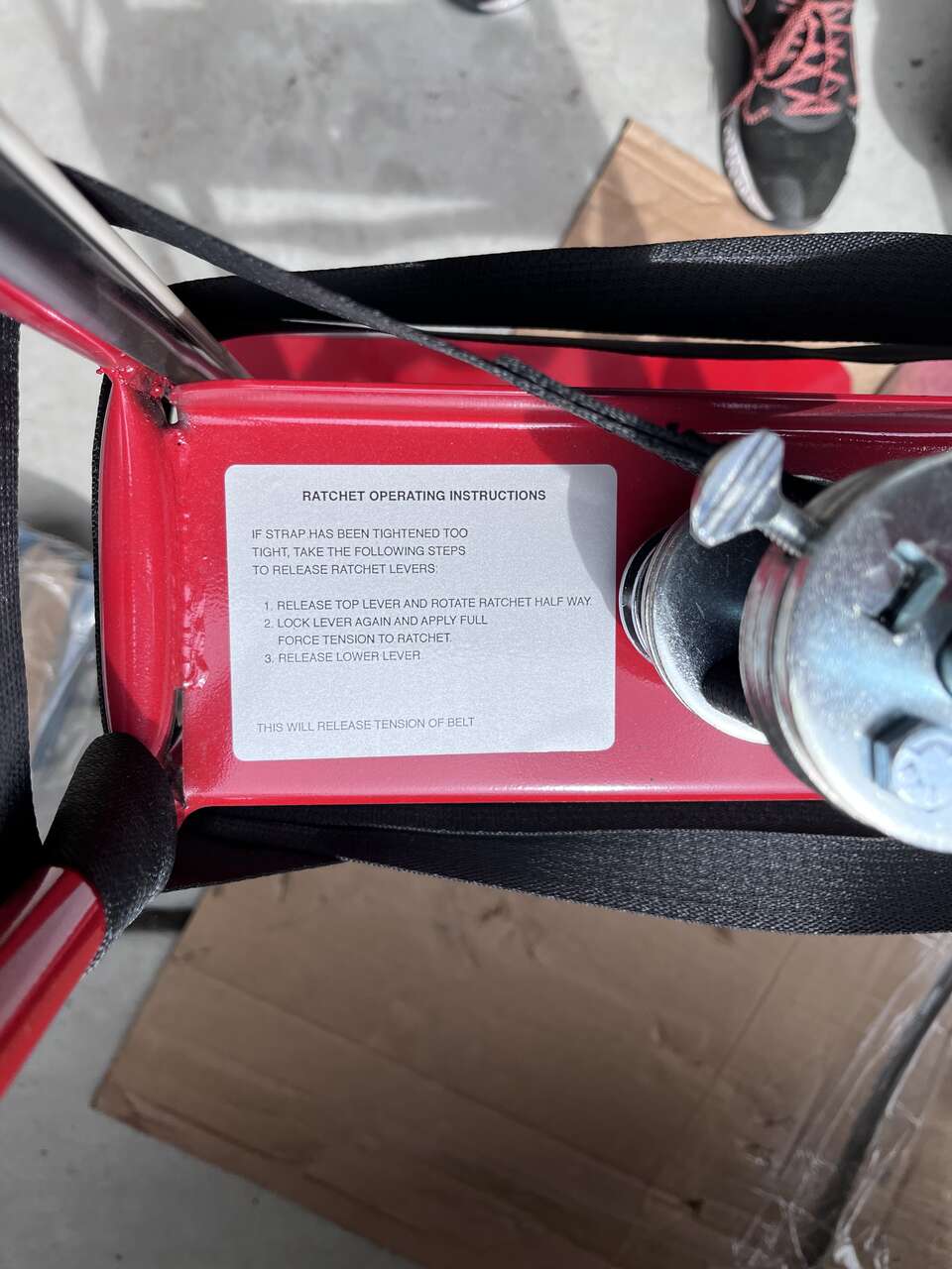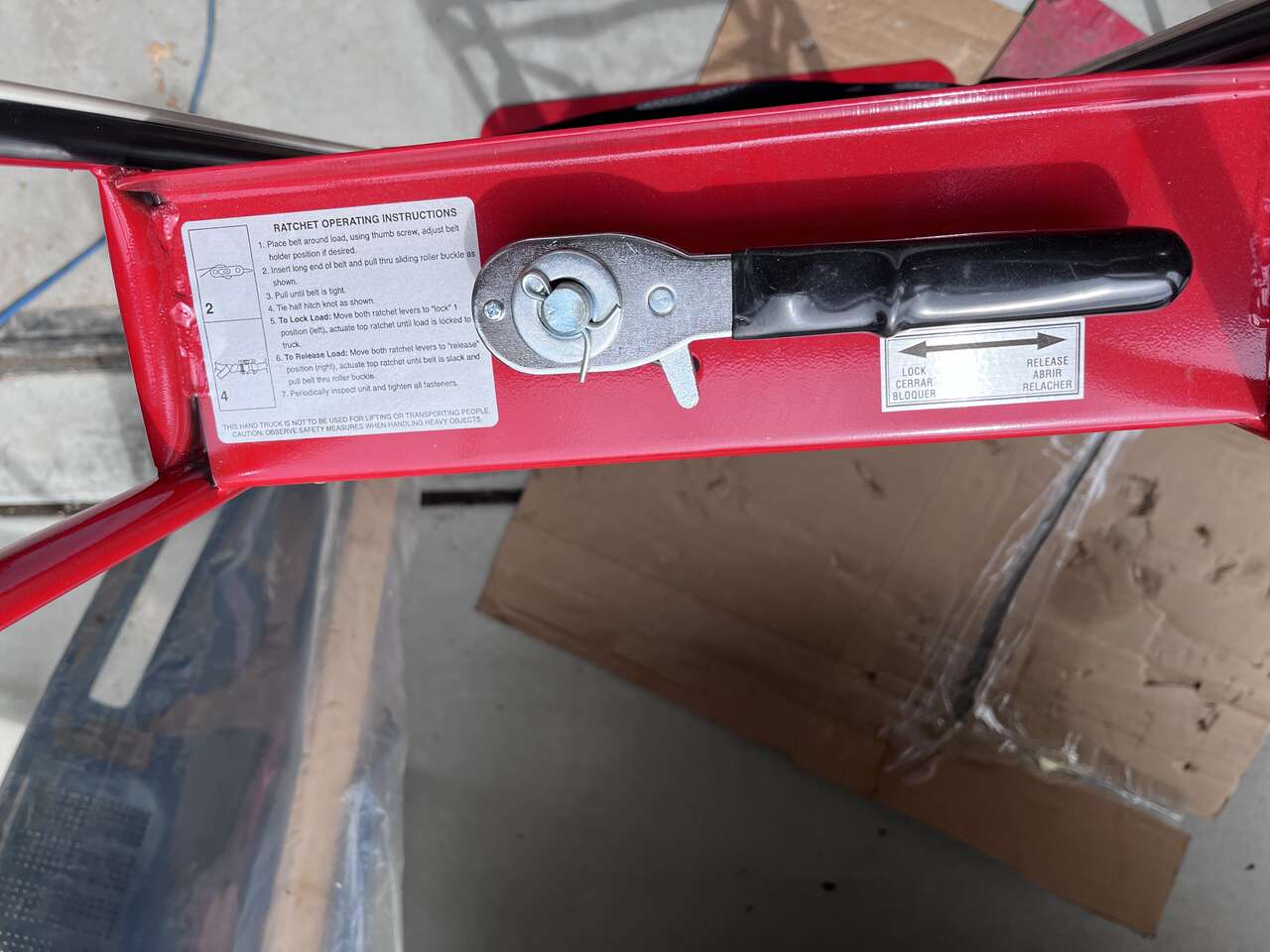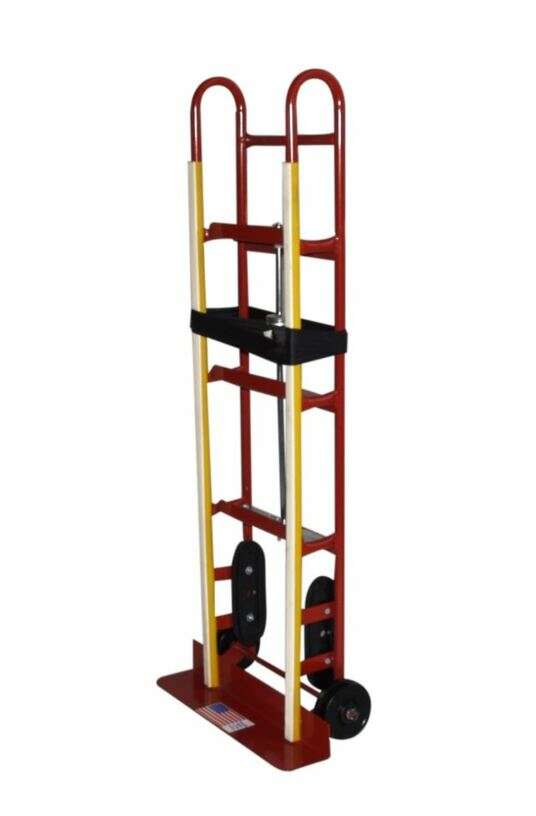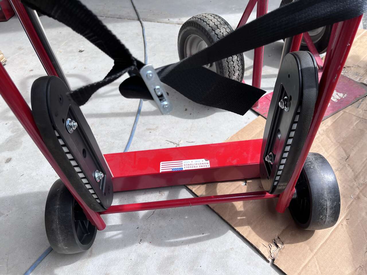 Designed to move large appliances, water heaters, furniture, and similar items with ease. Easy to use belt tightener to secure loads. Stair climbers reduce the impact when going up and down steps or curbs. Protective pads on frame to help protect the load. Automotive seat belt quality webbing for strength with protective pad that prevents buckle from contacting load. 800 Lb. load capacity.