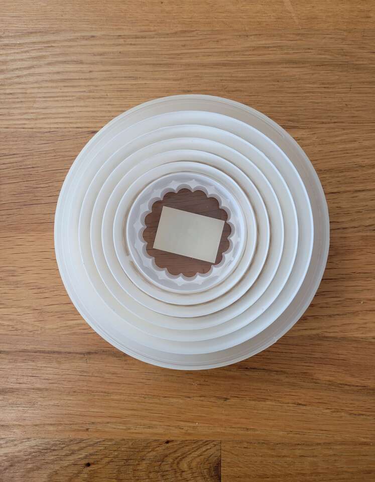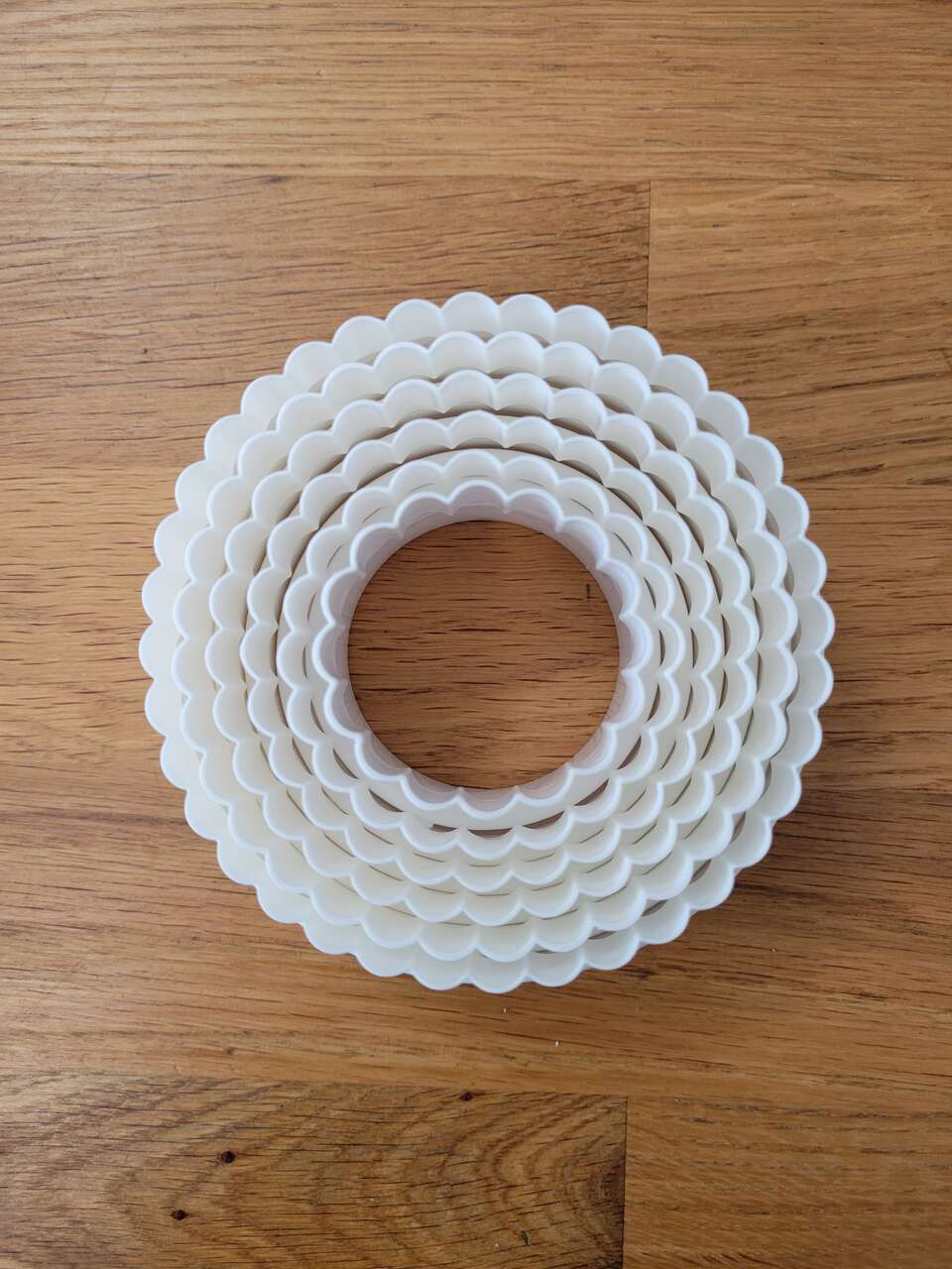 VenmoCut plain or scallop and size ranges from 1 7/8” to 3 7/8”. Never used.