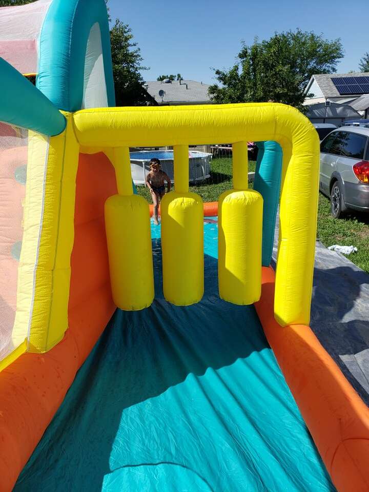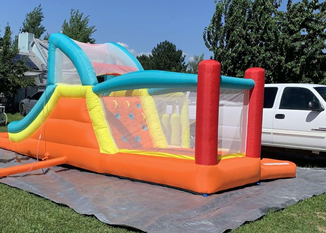 Have the kids cool down this summer with this super fun bounce house water slide. Tons of fun.