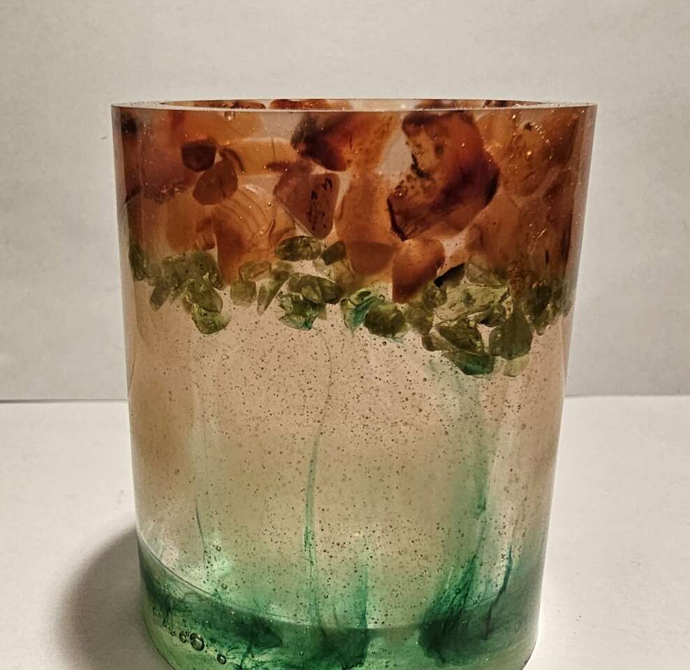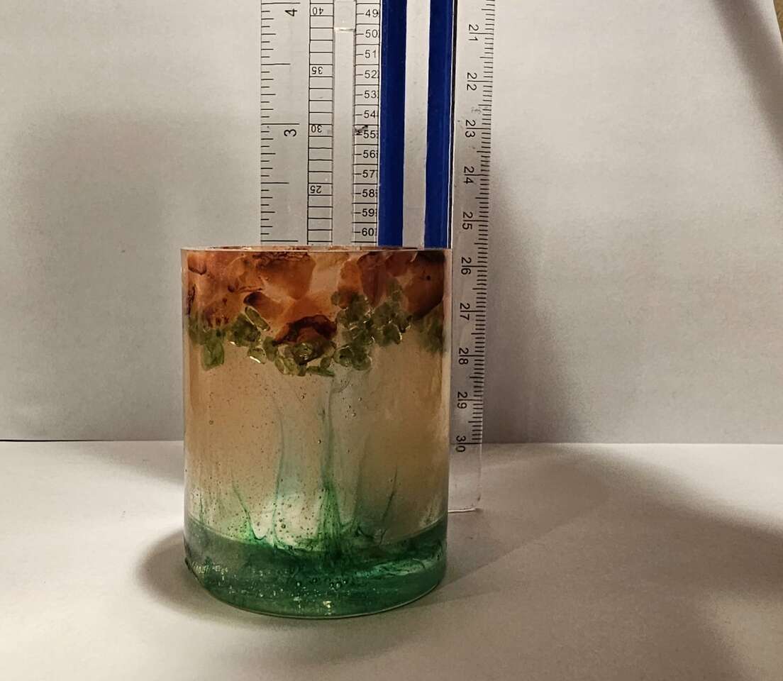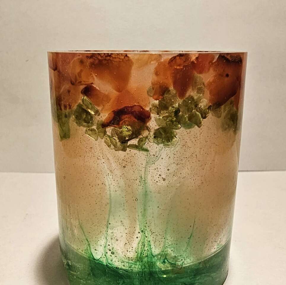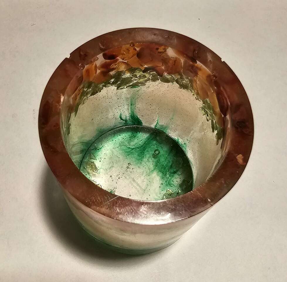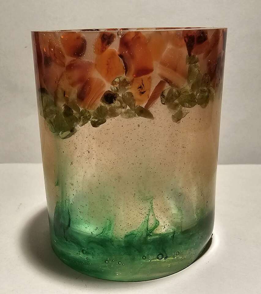 Smaller holder. It is about 2 inches tall and about 2 inches wide. I have others gem/rock items for sale and would be willing to make a package deal. Please check my other listings.
