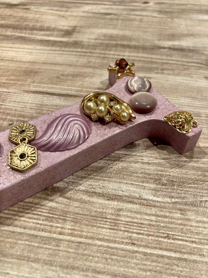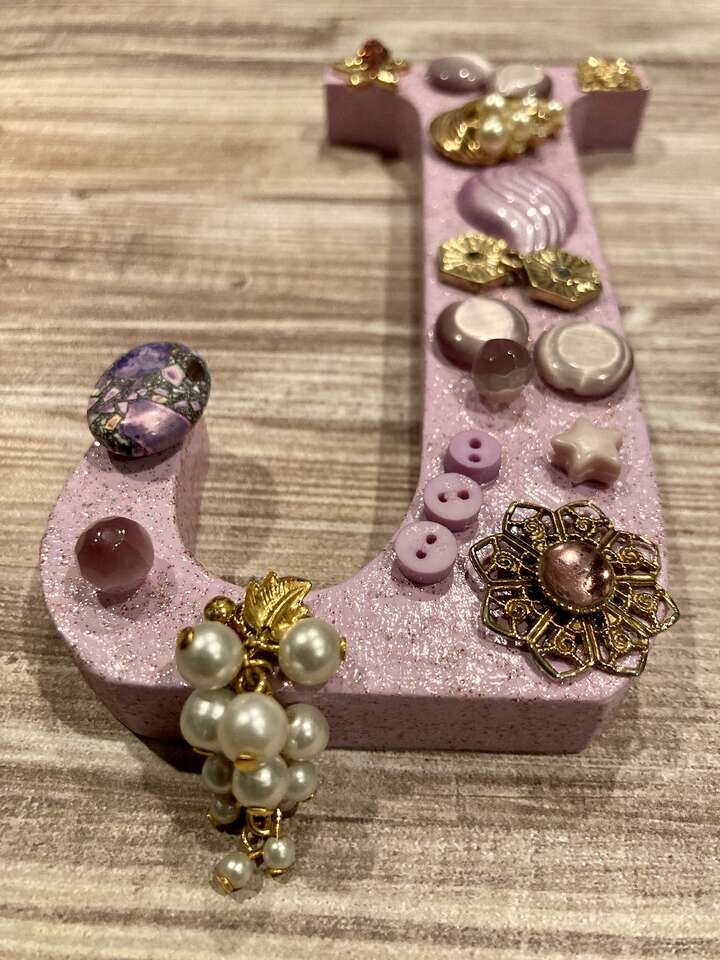 ApplePayHand painted and decorated small wooden letter J embellished with purple and gold trinkets. Perfect for baby girl nursery, little girl bedroom or anyone with the initial J! Dimensions are: 3” wide, 5” tall and 1” deep. Pre-drilled holes on back for easy hanging. Made in smoke-free home. Shipping is available.