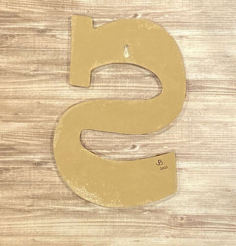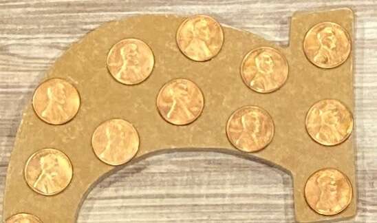 ApplePayHand painted and decorated Wooden letter S embellished with 1970s US pennies.
