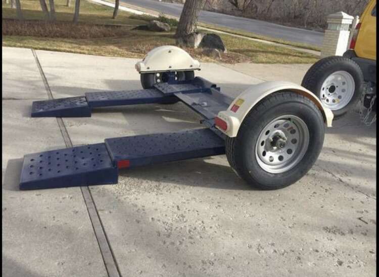 80 inch wide tow dolly with mounted spare and surge brakes. Brake controller not required. Requires 2 inch ball. Will hold compacts, midsize, and full-size cars, vans, and mini-trucks. Deck tilts and swivels for easy loading and pulling. Comes with brand new tires, spare, lights, and straps. Daily rate plus $300 refundable damage deposit which includes a $10 cleaning fee if it comes back dirty. Also available upon request:2-inch ball hitch (straight, 2, 4, and 8 inch drops available) hitch pin and coupler locks, ramp extensions for easy loading of low clearance cars or if you have to push the vehicle. Cash, Venmo, Apple Cash, AFCU transfer, CashApp, FB pay, NO CHECKS. Text or call for availability. If you call, please leave a message.