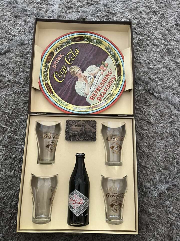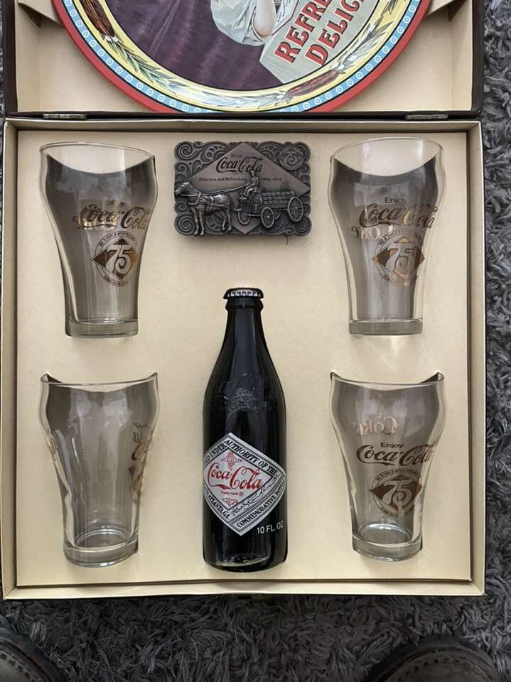 This is an awesome piece, 1977 Coca-Cola 75th anniversary box with everything still inside,everything inside is in amazing shape asking 70