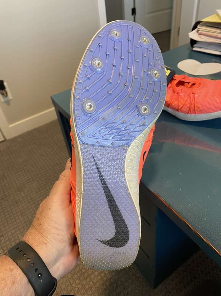 A great pair of triple jump on the field Nike elite, jumping spikes. Men’s size 14 in excellent condition. No flaws whatsoever. There’s a baggie with a spike wrench and brand new spikes that you can put into the shoes. Comes from a smoke free, pet free home. Cash or Venmo only. I live in Mapleton. Thank you.
