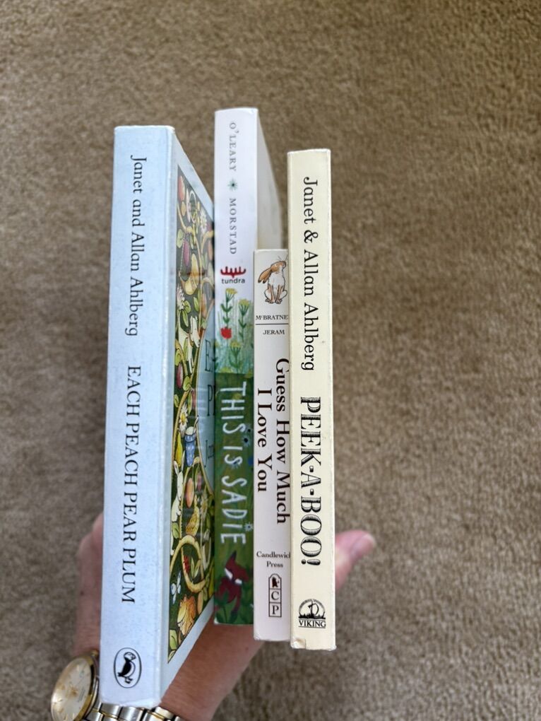 Four Classic Board Books, Set 1: Each Peach Pear Plum, This Is Sadie, Guess How Much I Love You, and Peek-a-Boo! All in very good condition. Text only. Cash or Venmo.