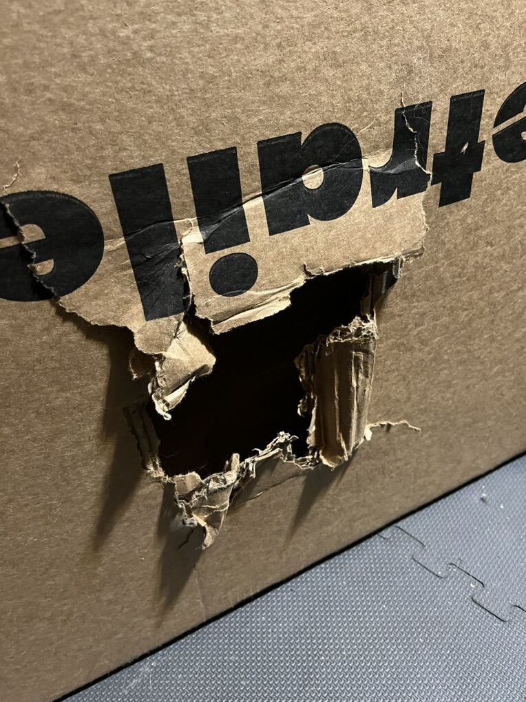 8x26x59” ha some side damage that can be patched/repaired (see photo). Extra sheet board supplied for that purpose.