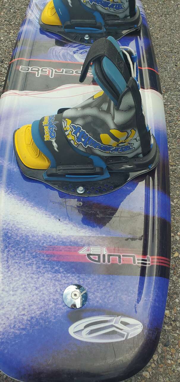 wake board is a Hyperlite Fluid 137cm with adjustable boots bindings. great condition, wide so easy to get up on!