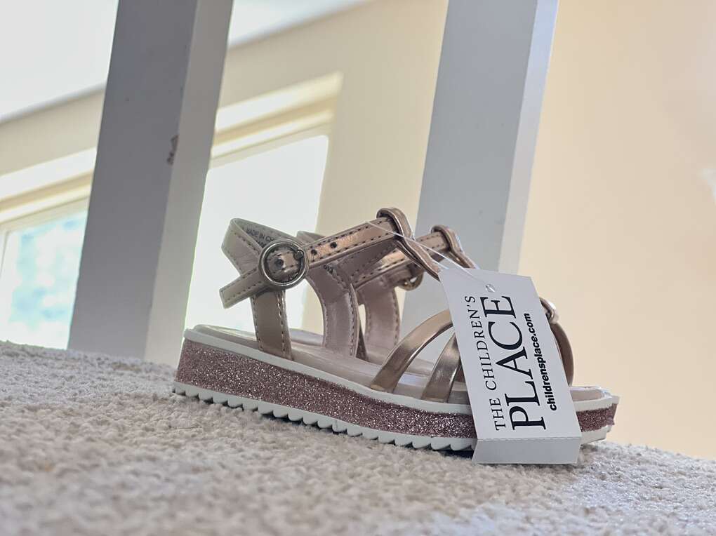 Nice sandals from The Children’s Place. Brand new. Never worn. Tag attached. Rose gold with pink sparkle midsole. Beautiful color.