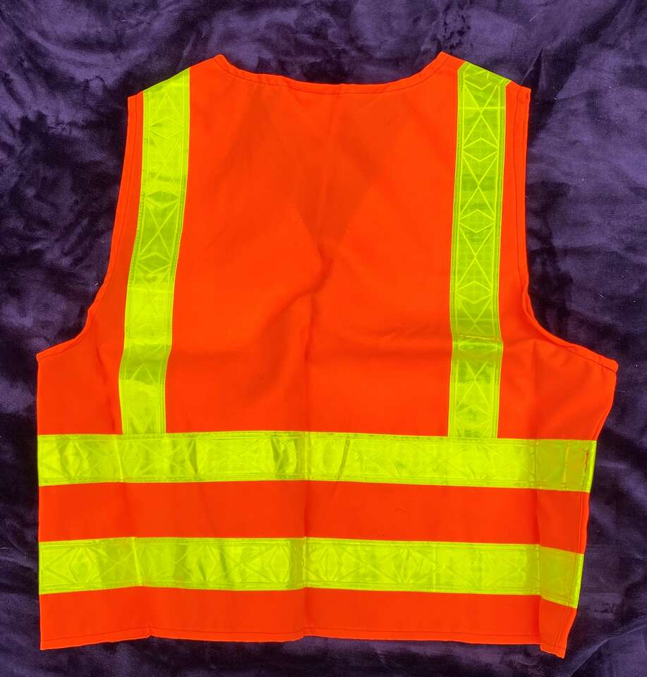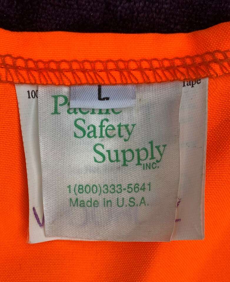 Pacific Safety Supply. Keep it in your car for when you break down somewhere. Wear it when riding your bike or scooter or when hiking. Don't be invisible & unsafe. Size L with adjustable velcro fastenings. Chest pockets. By Pacific Safety Supply Polyester. Excellent condition.