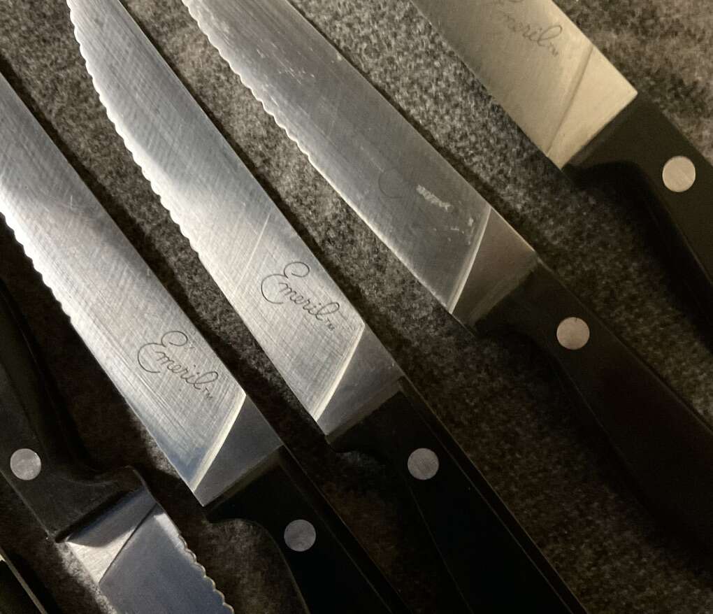 Emeril Lagasse 7 - Piece Stainless Steel Knife Set consisting of 4- 4.5” Steak Knives 1- 3” Birds Beak 1- 3.5” Paring 1- 5” Utility Please take a look at my other listings