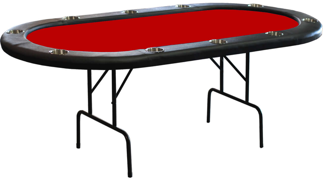 Portability is its middle name. This quality poker table features heavy-duty reinforced steel folding legs, not to mention a laminate racetrack with inset cup holders for convenient beverage storage; truly perfect for parties. We take care of the delivery, set up, and pick up. We provide you with the accessories in order to play.