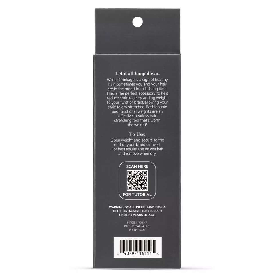 Let it all hang down. While shrinkage is a sign of healthy hair, sometimes you and your hair are in the mood for a lil’ hang time. The perfect accessory to help reduce shrinkage by adding weight to your twist or braid, allowing your style to dry stretched. Fashionable and functional, these electro-plated weights are an effective, heatless hair stretching tool that’s worth the weight!