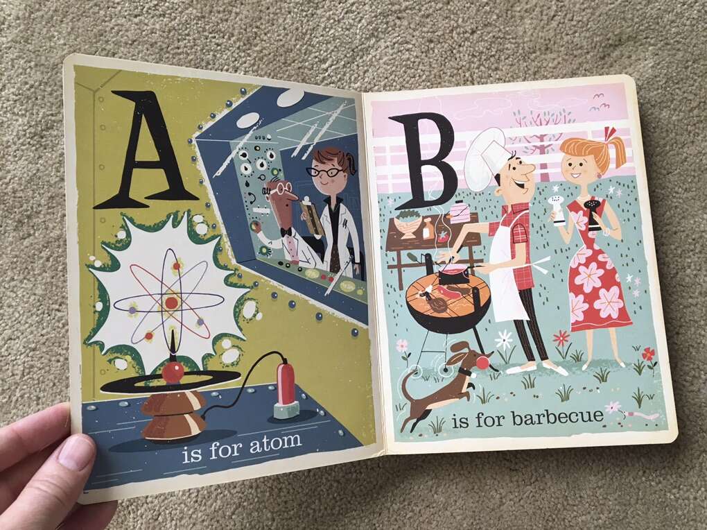 A is for Atom: A Midcentury Alphabet BabyLit Board Book, by Greg Paprocki. 8.5” x 6.5”, sturdy pages, colorful retro illustrations. 2016. Very good condition, slight wear on corners. Text only. Cash or Venmo. Discount on multiple items.