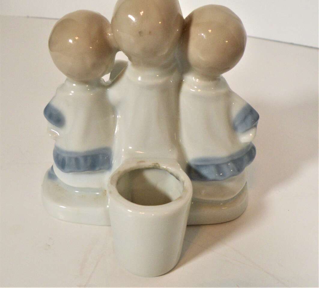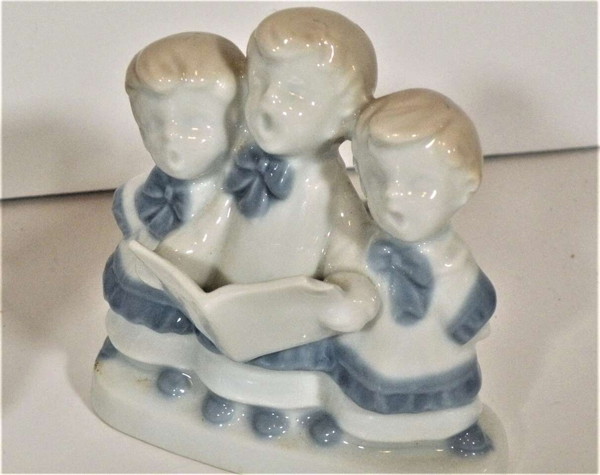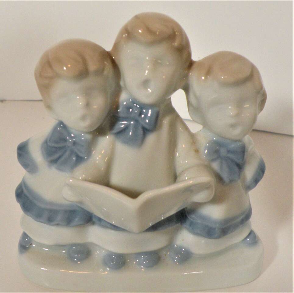 Porcelain Figurines GHC Japan from the 1950"s. Candleholders Hand painted Glazed. 2 sets of three choir boys delicately hand painted and glazed in paste color of blue and white. They are holding their music and portrayed to be singing in harmony together. They are dressed in white choir robes with blue trim and a big blue bow at the neck. They are very delicate looking and would add a touch of nostalgia to any collection. Very hard to find. These were brought over from Japan by my parents in the 1950's. They are very useable and will hold a candle in each set. They are in excellent condition with no cracks or chips and hand painting still in great condition.