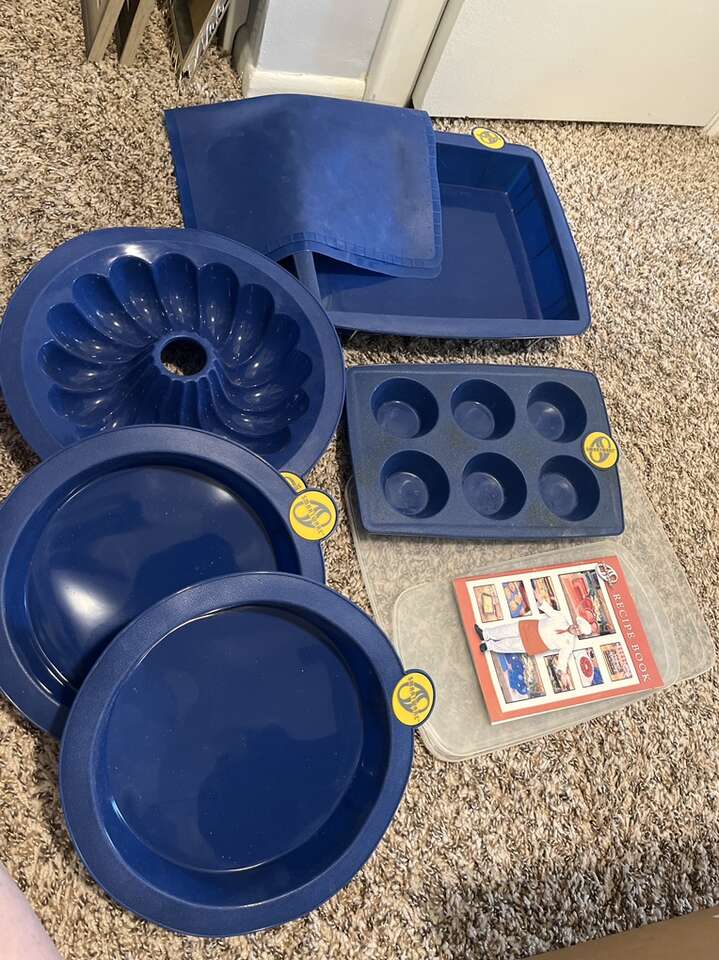 Selling a mostly new smartware silicon cookware set. Asking $20. I think I used the cupcake holder 1-2 times and I am missing the bread loaf pan, but I have the plastic lid. Everything else is new!! Comes with a recipe book.