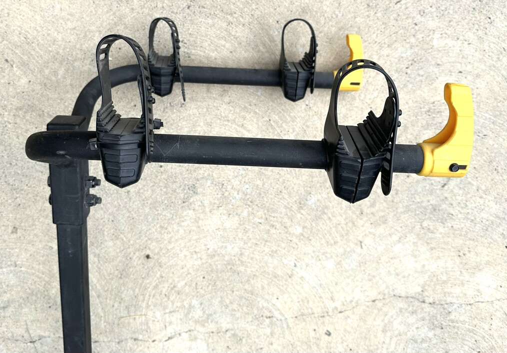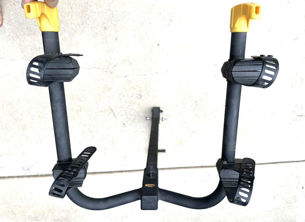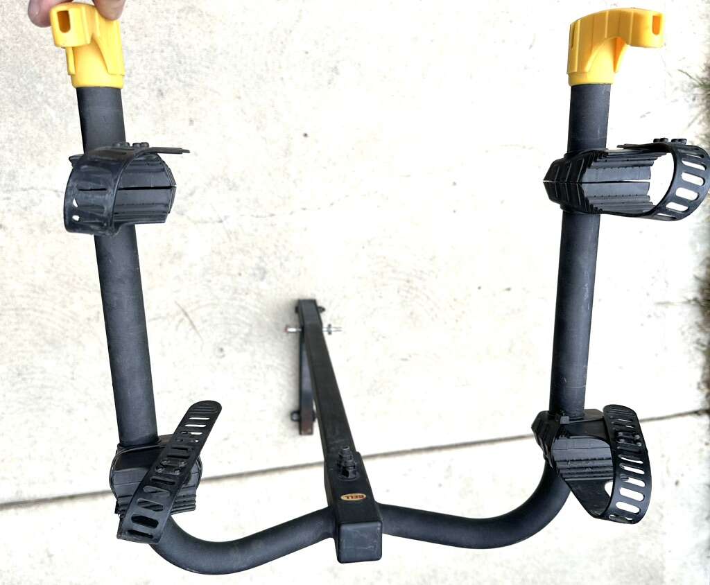 Bell hitch mount 2 bike rack for sale. This is a solid rack. An adapter can be added to to allow the rack to connect to a 2 inch receiver. See photos. Call or text with questions. Cash only please